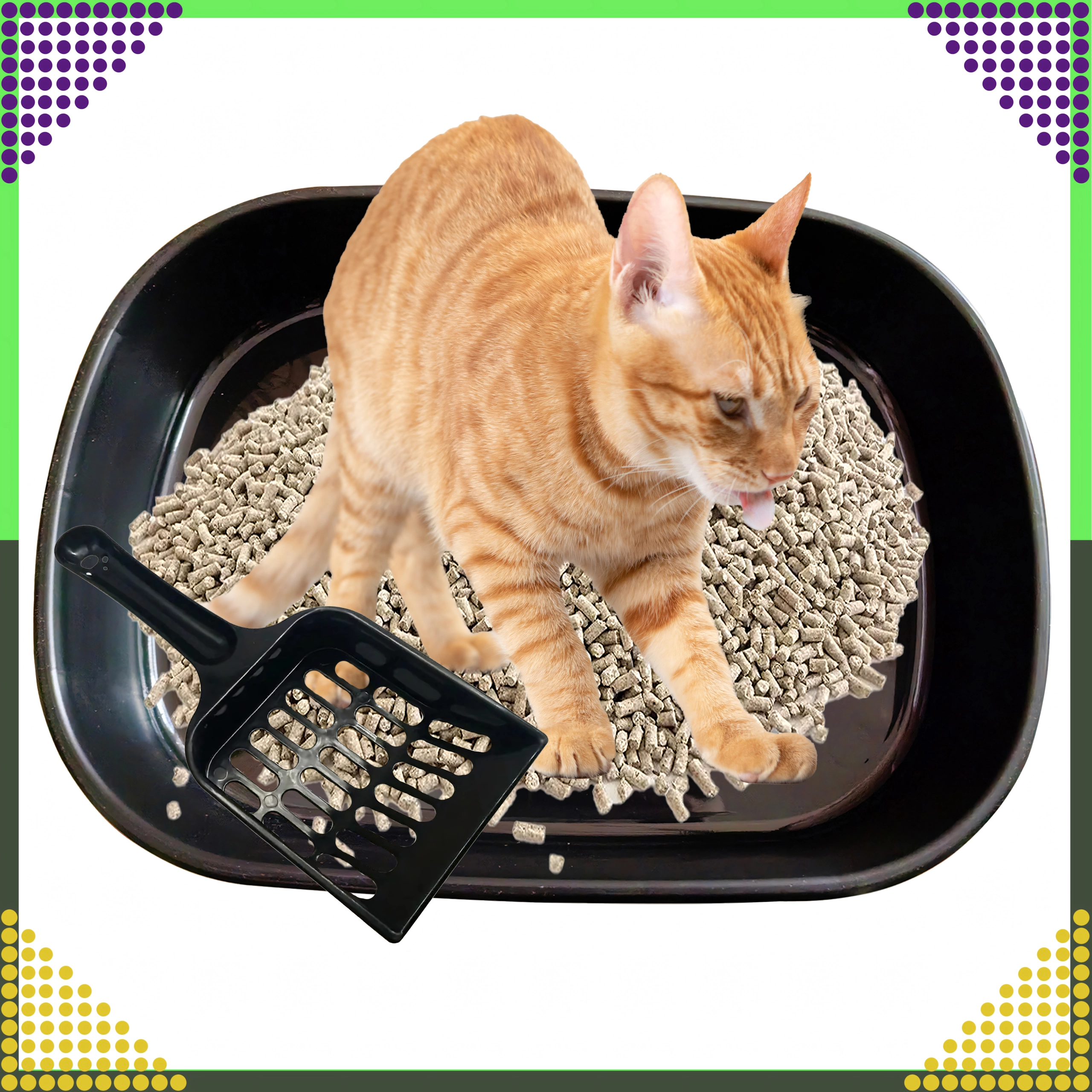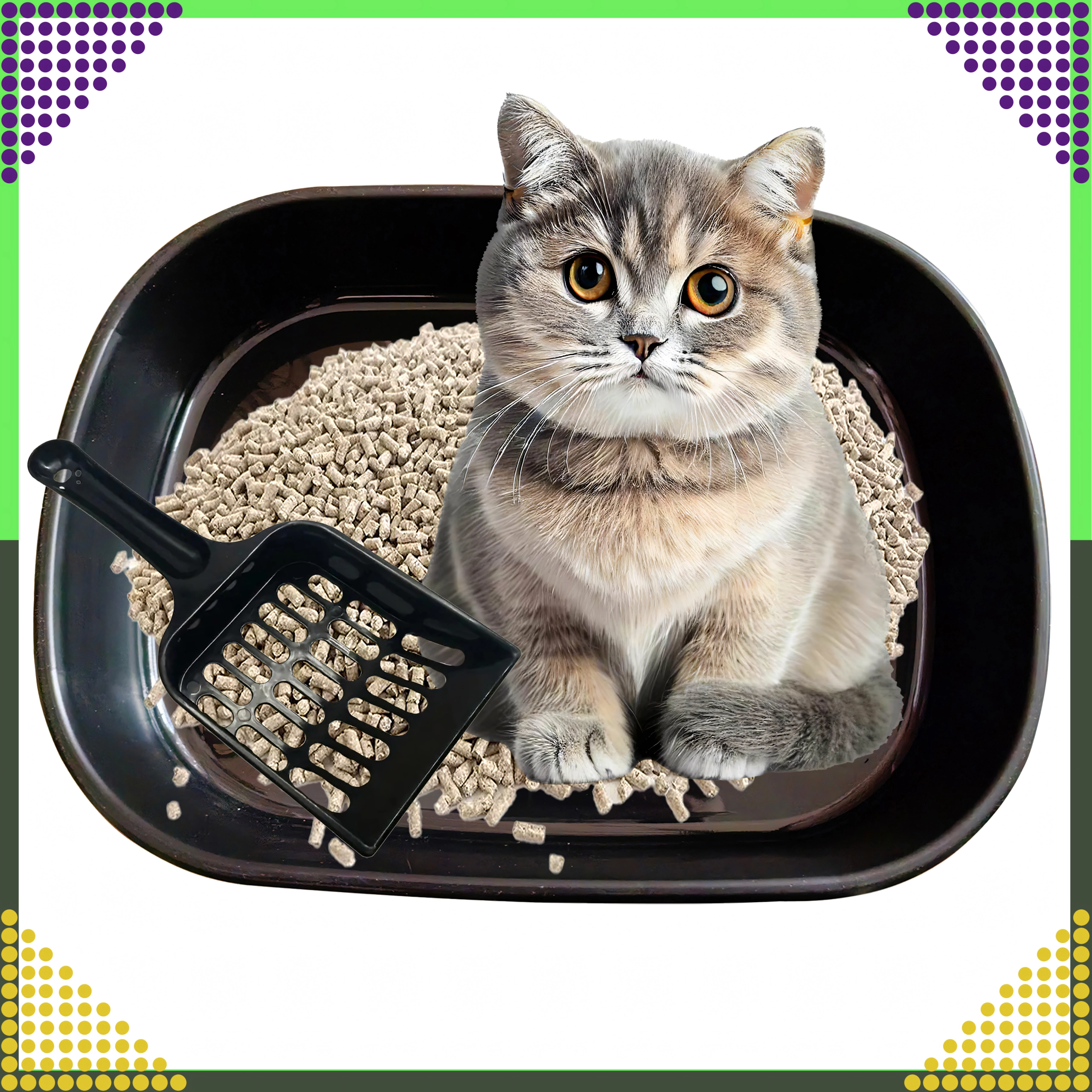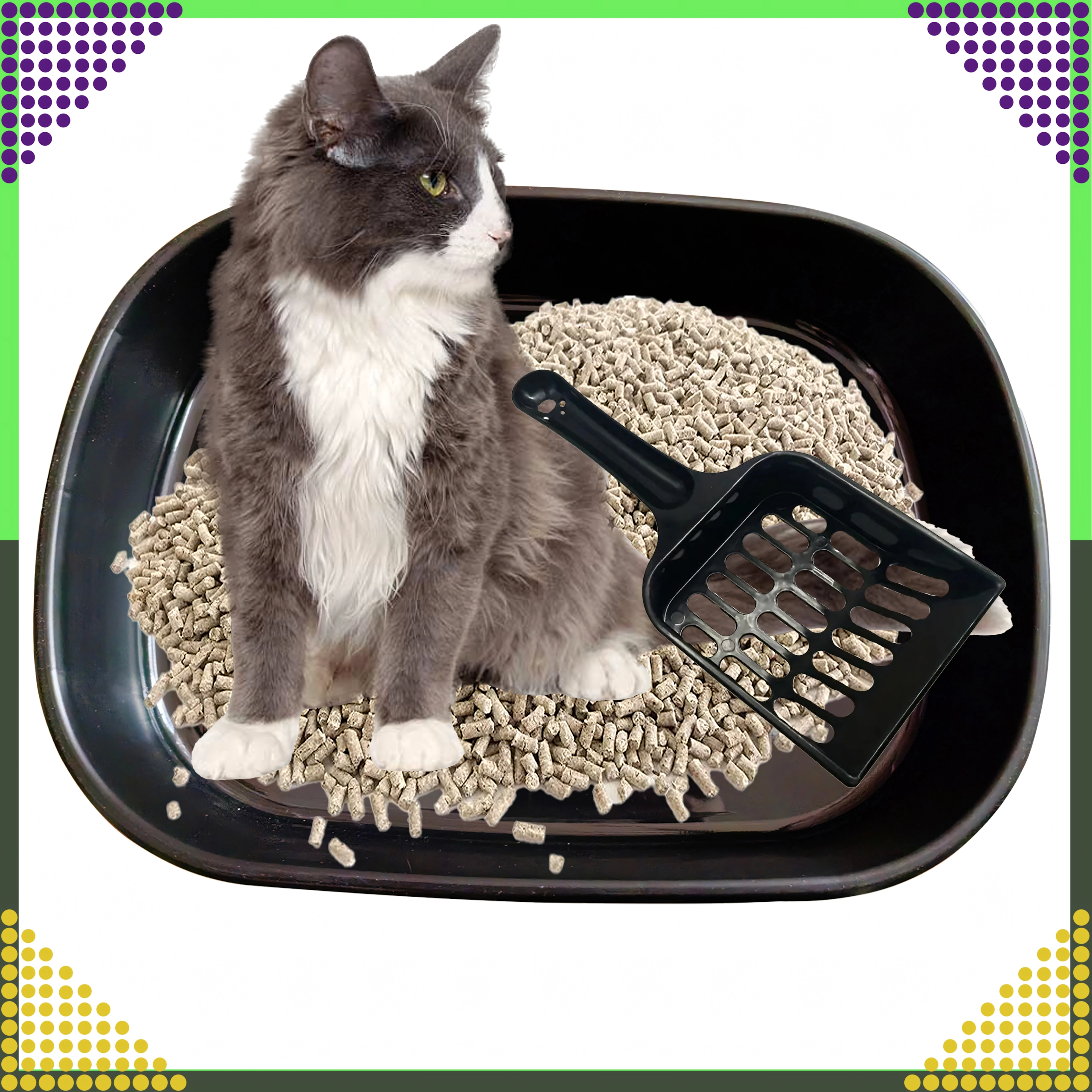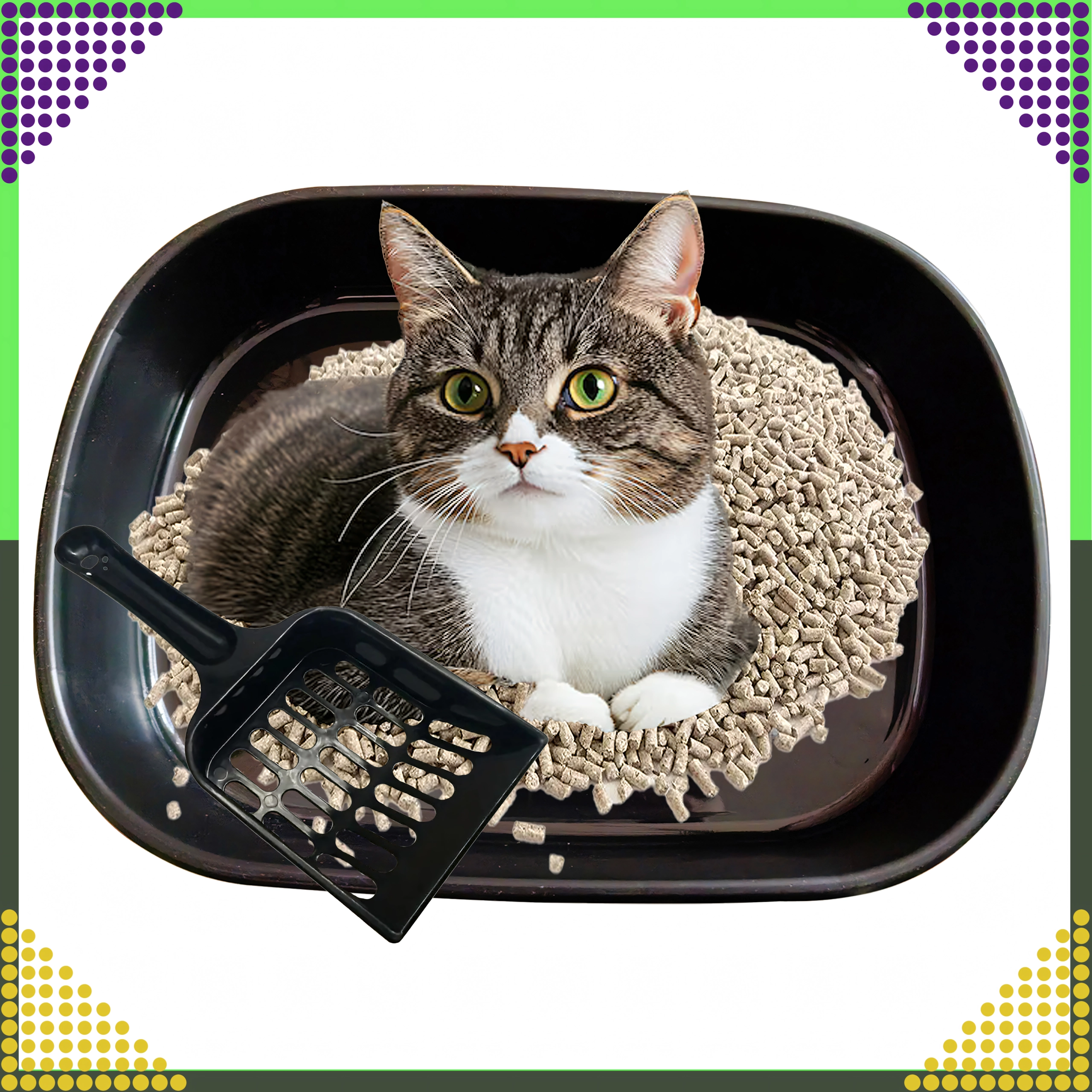 Het toilet is gemaakt van hoogwaardig, niet-giftig plastic, dat duurzaam, hygiënisch en gemakkelijk af te wassen is. De afneembare bodem en de meegeleverde schep met openingen maken snel zeven en het verwijderen van klonten mogelijk, zodat het onderhoud eenvoudig en schoon blijft.