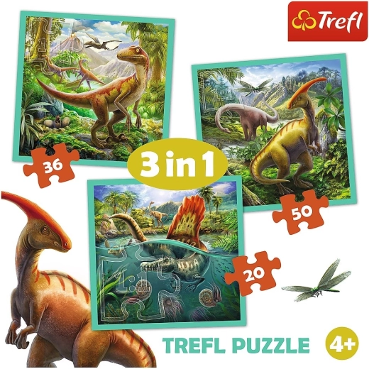 Ontdek driedubbel puzzelplezier met de 3-in-1 Geweldige wereld van dinosaurussen set van TREFL. In de doos vind je drie puzzels met een verschillend aantal stukjes, zodat zowel jongere als oudere kinderen – desnoods tegelijk – plezier beleven. Puzzelen ontwikkelt geduld, concentratie en motoriek en de kleurrijke dinomotieven stimuleren verbeelding en ontdekkingszin.