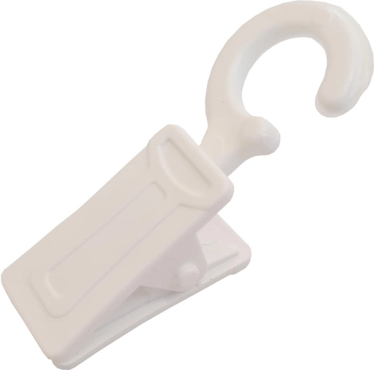 Deze hoogwaardige kunststof klemmen in elegant wit zijn ideaal voor het vastzetten van gordijnen, decoratieve stoffen, vitrage of tijdelijke afdekkingen. Ze zijn licht, duurzaam en eenvoudig in gebruik, zodat u snel en moeiteloos het benodigde materiaal bevestigt precies waar u het nodig hebt.