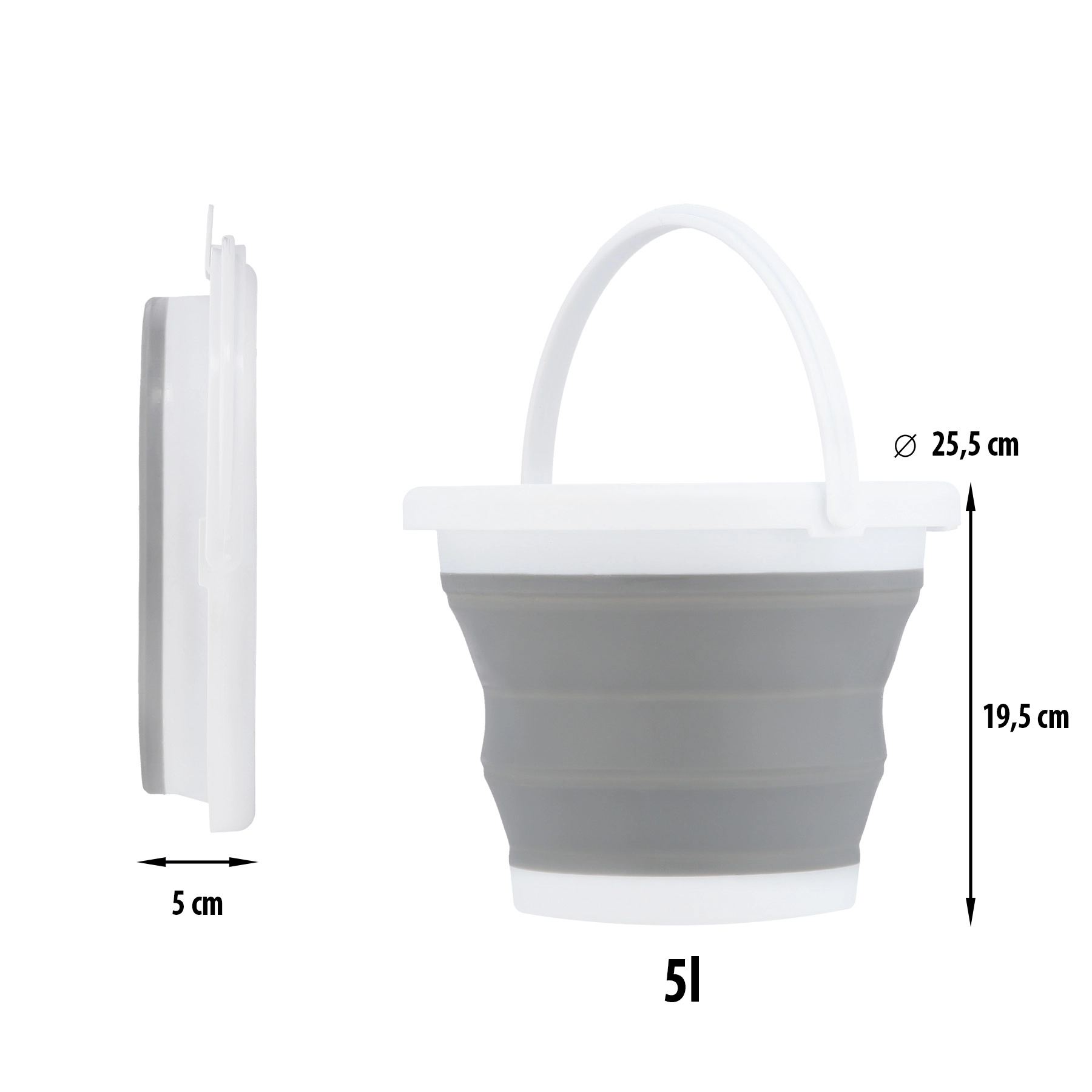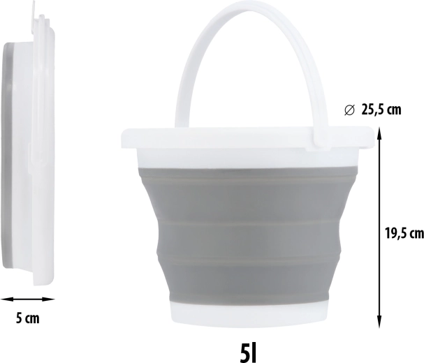Praktische opvouwbare emmer NILS Camp met een inhoud van 5 liter bespaart ruimte thuis en onderweg. Dankzij het slijtvaste materiaal, het lage gewicht en het opvouwbare design is hij ideaal voor kamperen, afwassen of water dragen. Een comfortabele handgreep en een ophangoog maken dragen en opbergen eenvoudig.