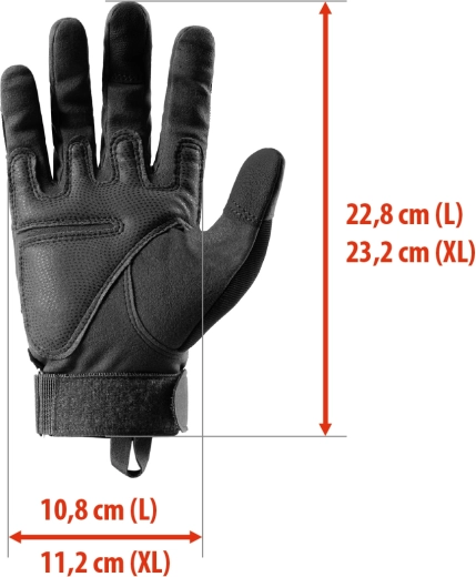 Touchscreen-uiteinden aan de vingers maken bediening van smartphones en navigatiesystemen mogelijk zonder de handschoenen uit te trekken. De verstelbare polsband houdt de handschoenen stevig op hun plaats, ventilatieperforaties bevorderen de luchtcirculatie en verminderen transpiratie. Geschikt voor survival, kamperen, trekking, jacht en bergbeklimmen.