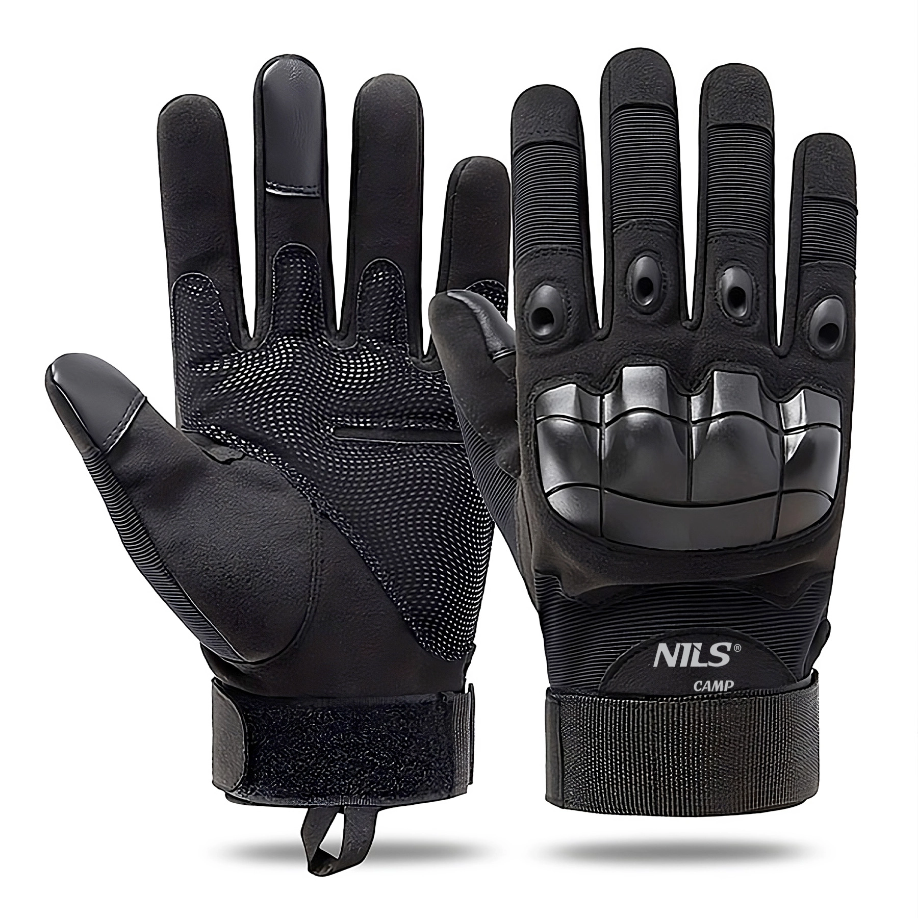 De tactische handschoenen NILS Camp zijn ontworpen voor outdoor, tactische activiteiten en motorrijden. De duurzame constructie met verstevigde knokkels en vingers beschermt de handen bij schokken, terwijl de antisliptextuur op de handpalm zorgt voor een zekere grip op gereedschap en uitrusting. De lichte en flexibele stof maakt comfortabel bewegen zonder beperking mogelijk.