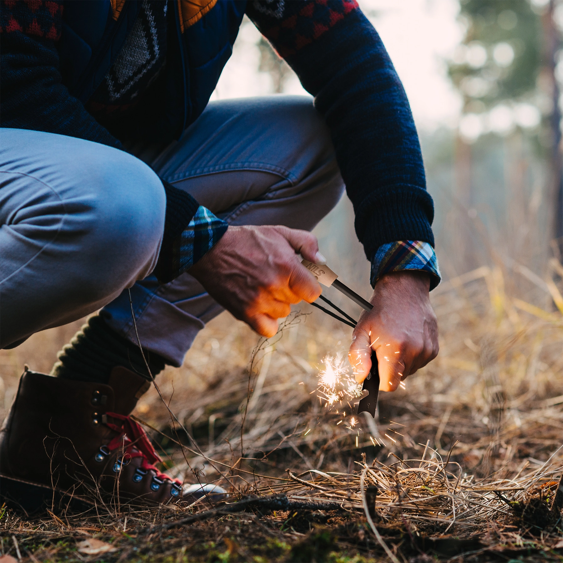 De magnesiumstaaf genereert extreem hete vonken (tot 3.500 °C) die betrouwbaar tondel, berkenbast of droog gras ontsteken, zelfs onder moeilijke omstandigheden.