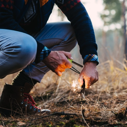 De ferroceriumstaaf genereert intense vonken die gemakkelijk tondel ontsteken, zelfs onder veeleisende omstandigheden. Betrouwbare vuurstart bij wind en vocht.
