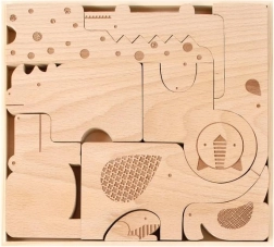 De houten dierenpuzzel Safari van PETIT COLLAGE betovert kinderen in elke ontwikkelingsfase. Kleine ontdekkers kunnen de stukjes in het houten frame leggen of vrij combineren en op elkaar stapelen – het spel stimuleert zo niet alleen motoriek en oog-handcoördinatie, maar ook creativiteit en geduld.