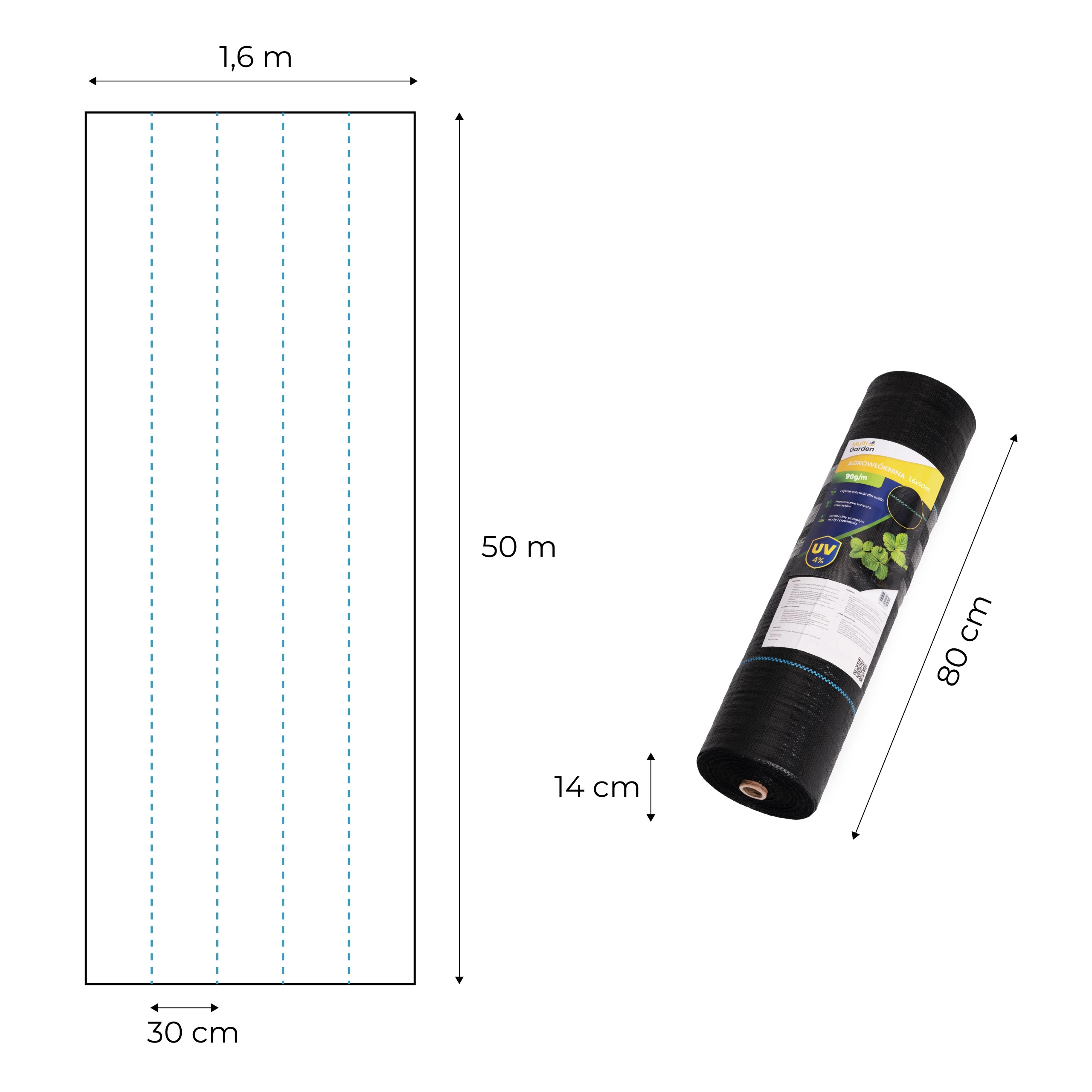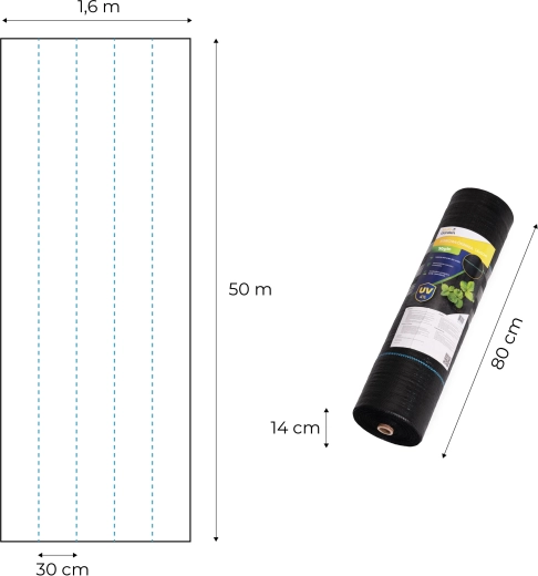 Dankzij de UV-stabilisatie en de sterke polypropyleenstructuur is het bestand tegen scheuren en weersinvloeden gedurende vele seizoenen. Blauwe hulplijnen om de 30 cm vergemakkelijken het plannen van plantafstanden en versnellen het werk in de tuin. De meegeleverde haringen houden het doek veilig op zijn plaats, ook bij wind.