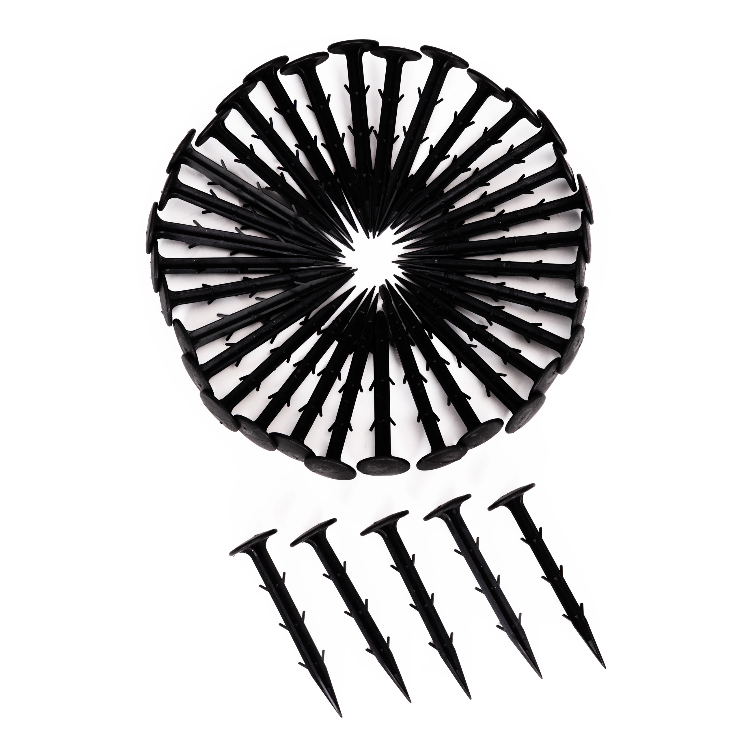 Blauwe hulplijnen om de 30 cm maken het uitzetten van aanplant eenvoudiger. De meegeleverde haringen fixeren het doek stevig, zodat het niet verschuift, zelfs niet bij wind.