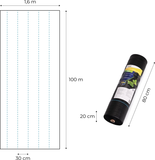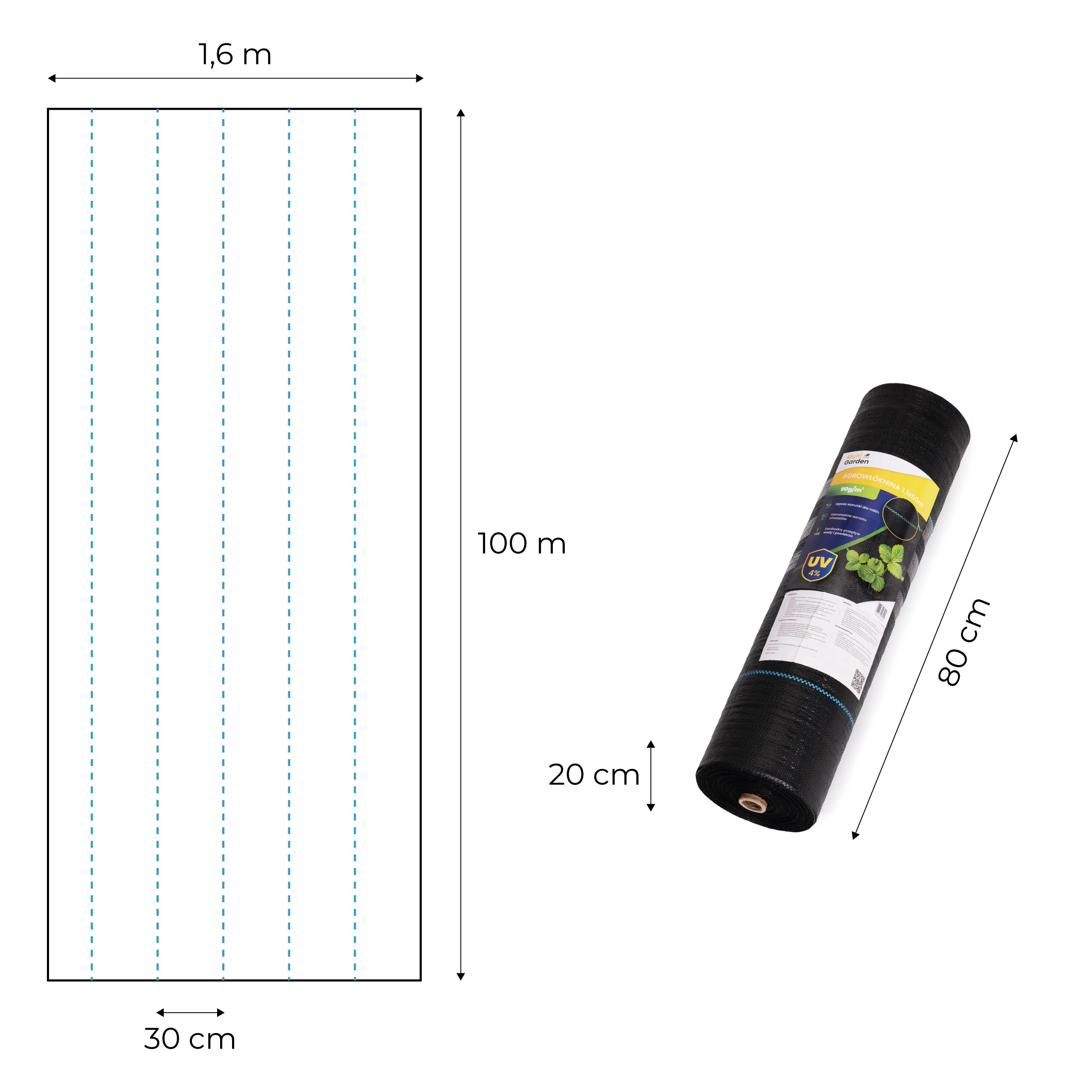 Professioneel agrotextiel voor de tuin dat onkruid betrouwbaar onderdrukt, terwijl het water en lucht doorlaat en de bodem tegen uitdroging beschermt. Duurzame UV-gestabiliseerde stof 90 g/m² met blauwe hulplijnen voor eenvoudig planten. Bovendien in de verpakking 50 bevestigingspinnen voor een snelle en stabiele installatie. Ideaal voor perken, groente, struiken en paadjes.