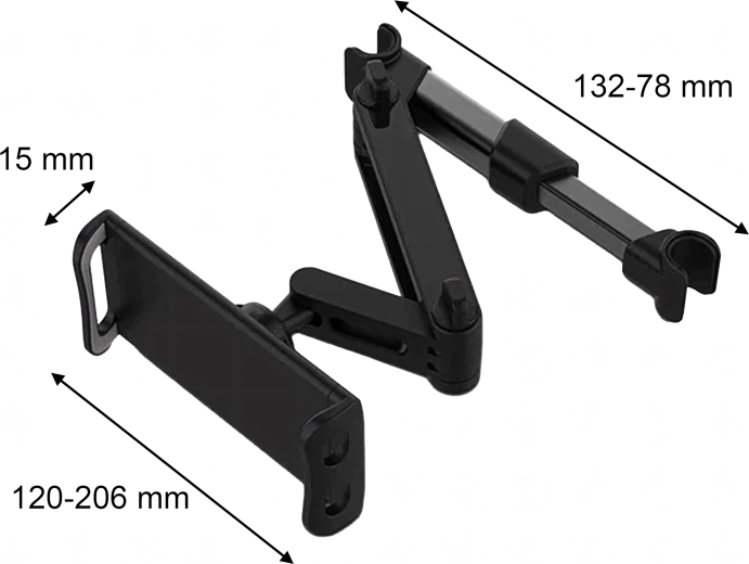 Geniet van rustige ritten en entertainment voor passagiers. De robuuste houder wordt tussen de stangen van de hoofdsteun gemonteerd en dankzij de verstelbare armen past hij veilig voor de meeste telefoons en tablets. Zachte pads beschermen het apparaat tegen krassen, terwijl borgschroeven een stabiele positie behouden, zelfs op hobbelige wegen.