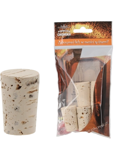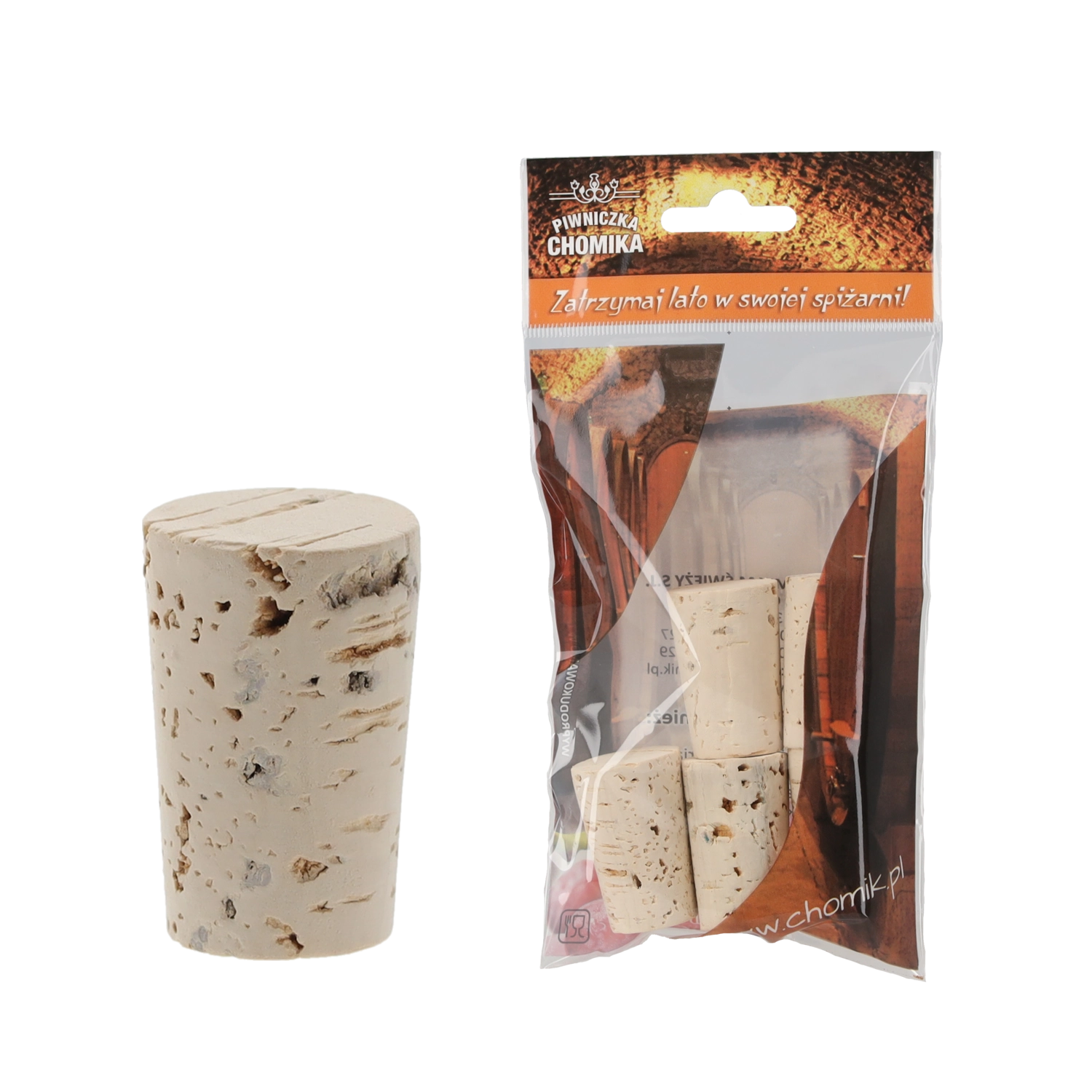 Praktische set van vijf conische kurken met een diameter van 25 mm voor het betrouwbaar afsluiten van flessen en mandflessen. Gemaakt van natuurkurk voor milieuvriendelijk en veilig gebruik in contact met voedsel. Dankzij de dichte afsluiting beschermen ze dranken tegen oxidatie en vervuiling en helpen ze de versheid en het aroma van huisgemaakte wijnen, likeuren en andere dranken te behouden.