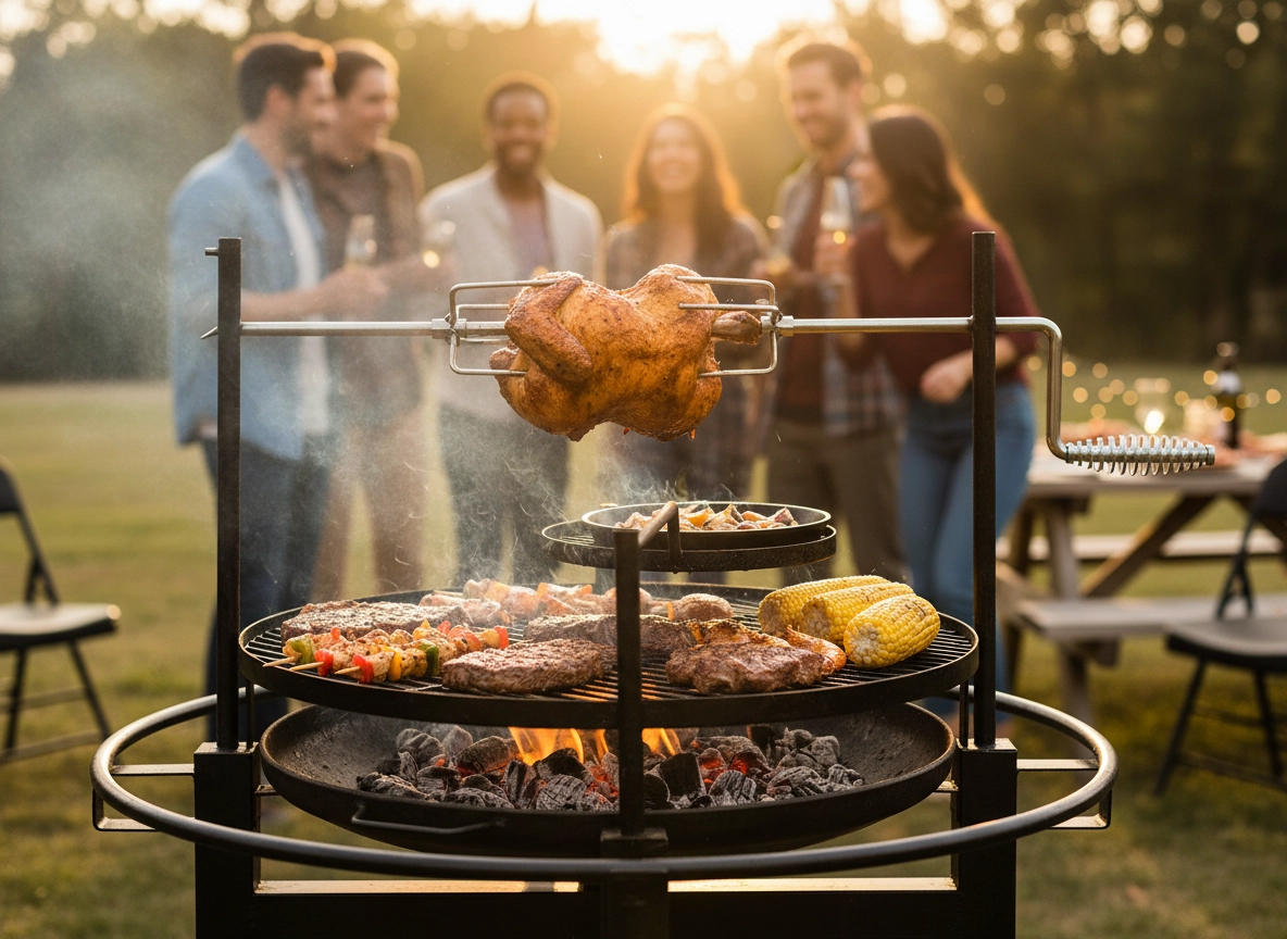 Ontdek de veelzijdige tuingrill met draaispit voor perfect gegaard en sappig vlees. Dankzij de robuuste metalen constructie, eenvoudige bediening en gelijkmatige grillresultaten behaalt u elke keer weer geweldige resultaten.