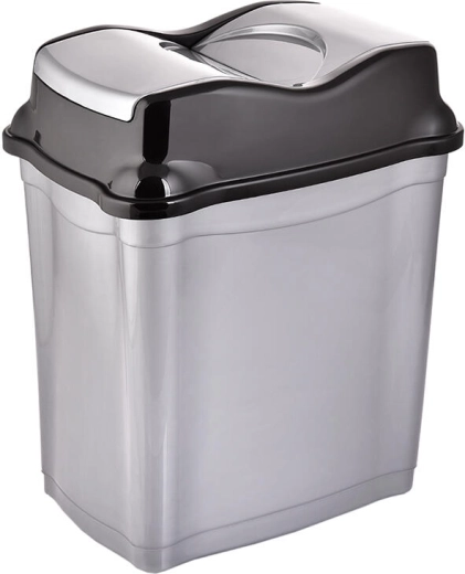 Elegante en praktische bak met een origineel deksel in golfvorm voor comfortabel en hygiënisch weggooien van afval. Dankzij het gesplitste kanteldeksel in het midden werpt u eenvoudig ook groter afval in zonder het deksel volledig te hoeven openen. Het compacte volume van 5 liter en de afmetingen 21 × 16 × 26 cm besparen ruimte en passen op het werkblad, onder de gootsteen en in kleinere ruimtes.