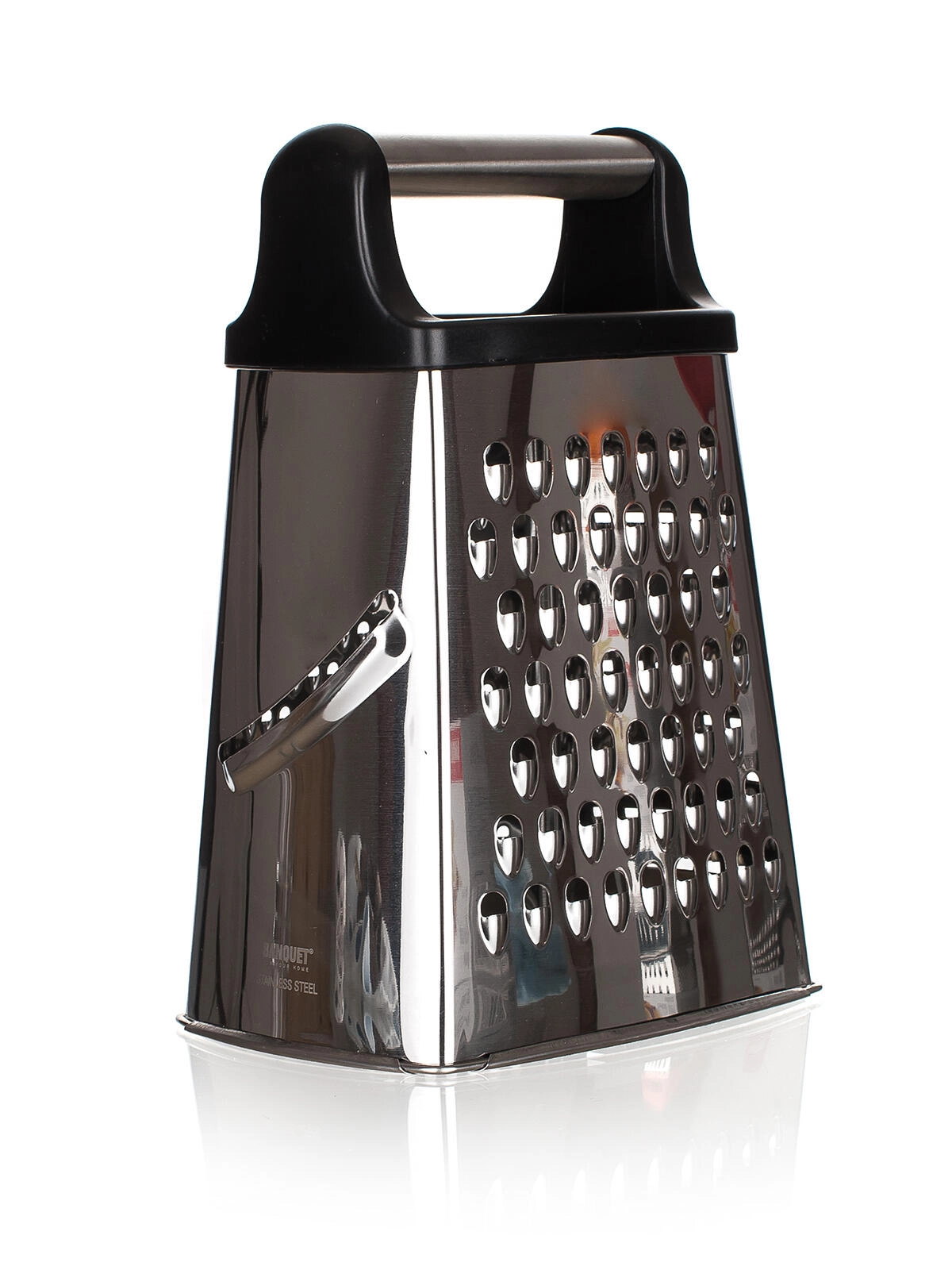 De stabiele A‑vorm zorgt voor een stevige stand op het werkblad, terwijl het gladde roestvrijstalen oppervlak snel en eenvoudig te reinigen is. De rasp is ideaal voor kaas, groenten, fruit en chocolade – een uitstekende keuze voor elke thuiskeuken.