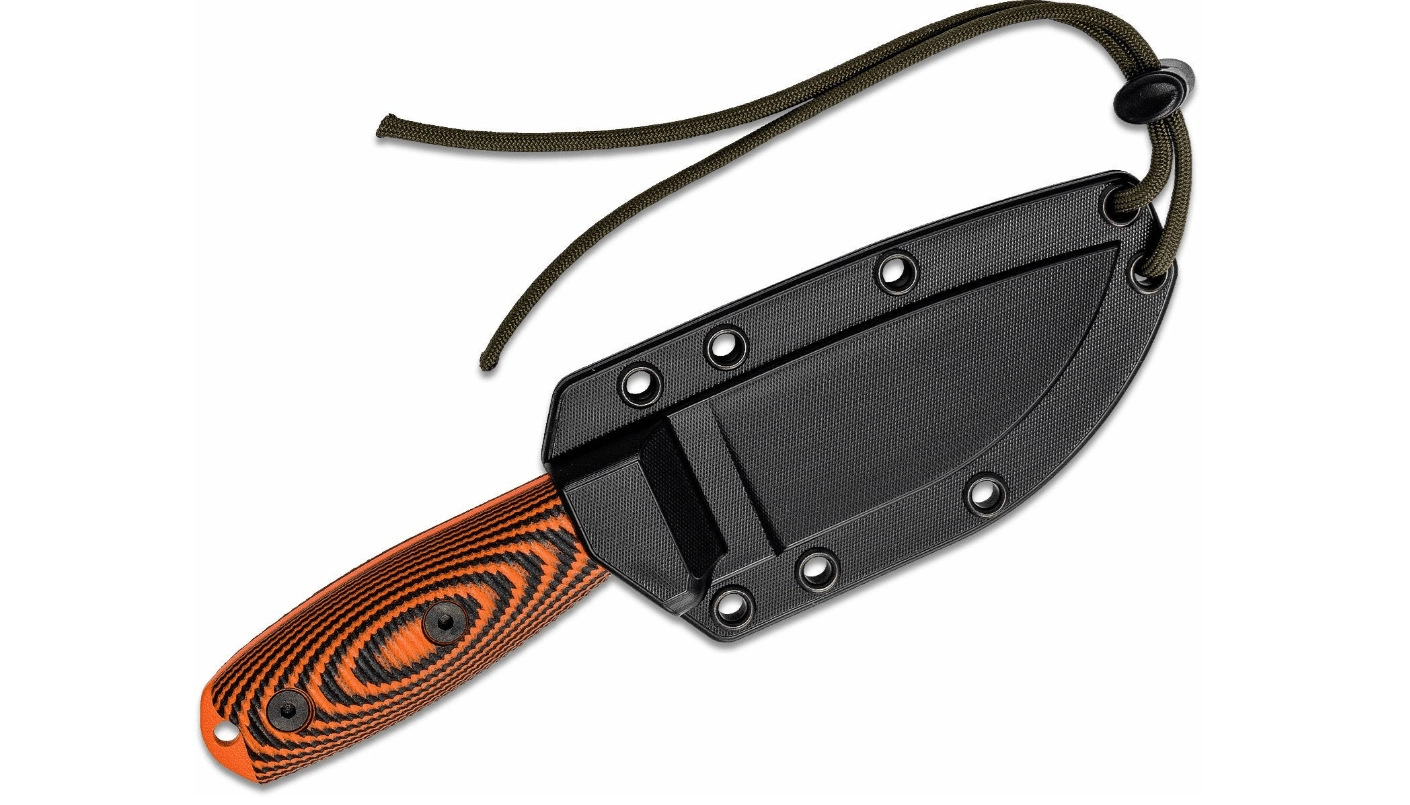 Het ergonomische handvat van G10 is getextureerd voor een stevige, zekere grip, ook met handschoenen of natte handen. Aan het uiteinde van het handvat vind je een koordgat voor extra zekering. In de set zit een zwart kydex foedraal met clip voor comfortabel dragen aan de riem.