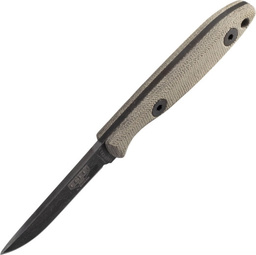 Het model ESEE CR 2.5 Camp-Lore, ontworpen door Cody Rowen, is een klein maar bijzonder capabel mes voor alledaagse taken in het veld. Dankzij het 1095 koolstofstalen lemmet met beschermende coating snijdt het uitstekend, is het gemakkelijk te slijpen en biedt het zekerheid bij werken met hout en voedsel.