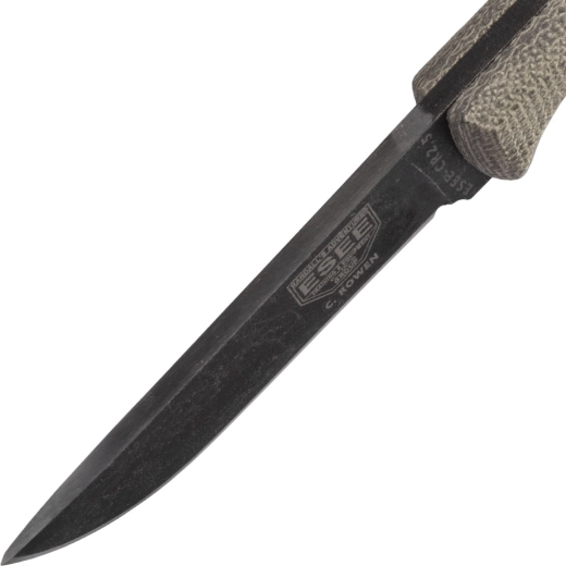 Het robuuste 1095-lemmet biedt een uitstekende snede, is eenvoudig te slijpen en heeft verhoogde bestendigheid dankzij de zwarte corrosiewerende coating.