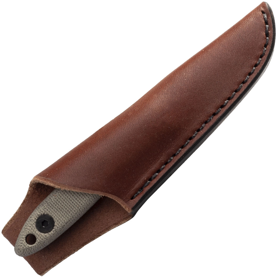 De getextureerde micarta handgreep ligt geweldig in de hand, slipt niet en verhoogt samen met de full-tang constructie de duurzaamheid en stabiliteit bij snijden, houtsnijden en fijn werk. De lederen schede maakt comfortabel en veilig dragen aan de riem mogelijk.
