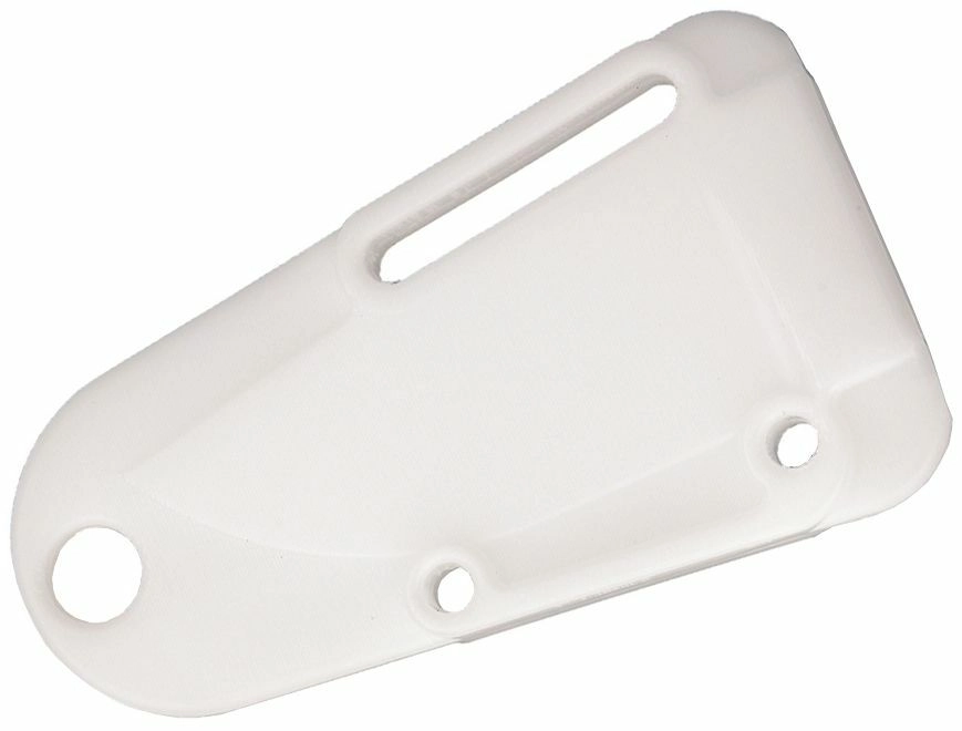 De stevige kunststof schede beschermt het lemmet en maakt dragen aan de nek of bevestigen aan uitrusting mogelijk. Meerdere montageopeningen voor universele aanpassing.