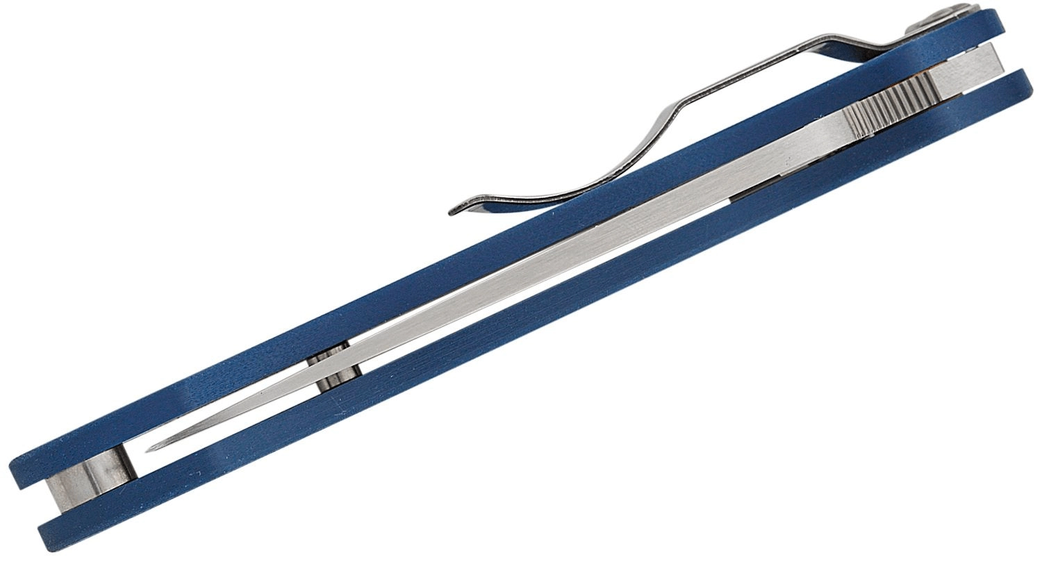 Openen gaat intuïtief en snel via de SpyderHole; voor betrouwbare vergrendeling zorgt de Compression Lock, die robuust is en eenvoudig met één hand te bedienen. Het ergonomische G10 handvat in kobaltblauw biedt zekerheid van grip, ook onder veeleisende omstandigheden.