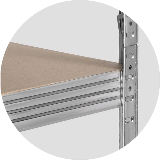 De robuuste stellingkast HUMBREG is ideaal voor garage, werkplaats, kelder, archief en winkel. Dankzij de verzinkte profielen en MDF-legplanken met middenversteviging biedt hij hoge stabiliteit en een lange levensduur. Verstelbare plankhoogte (per 40 mm) maakt het mogelijk de indeling precies aan uw behoeften aan te passen, terwijl kunststof voetdoppen de vloer tegen krassen beschermen.