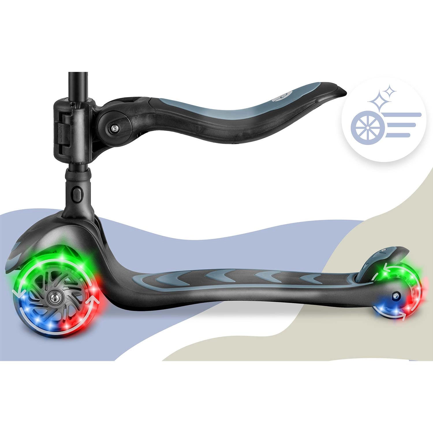 De Nukido Flippo step gebruikt een intuïtief balancesysteem – sturen door het lichaam te kantelen, niet door het stuur te draaien. Kinderen leren zo snel de rijtechniek en ontwikkelen tegelijk evenwicht en coördinatie. Drie wielen zorgen voor uitstekende stabiliteit, ook bij lagere snelheden, waardoor de step ideaal is voor beginners.