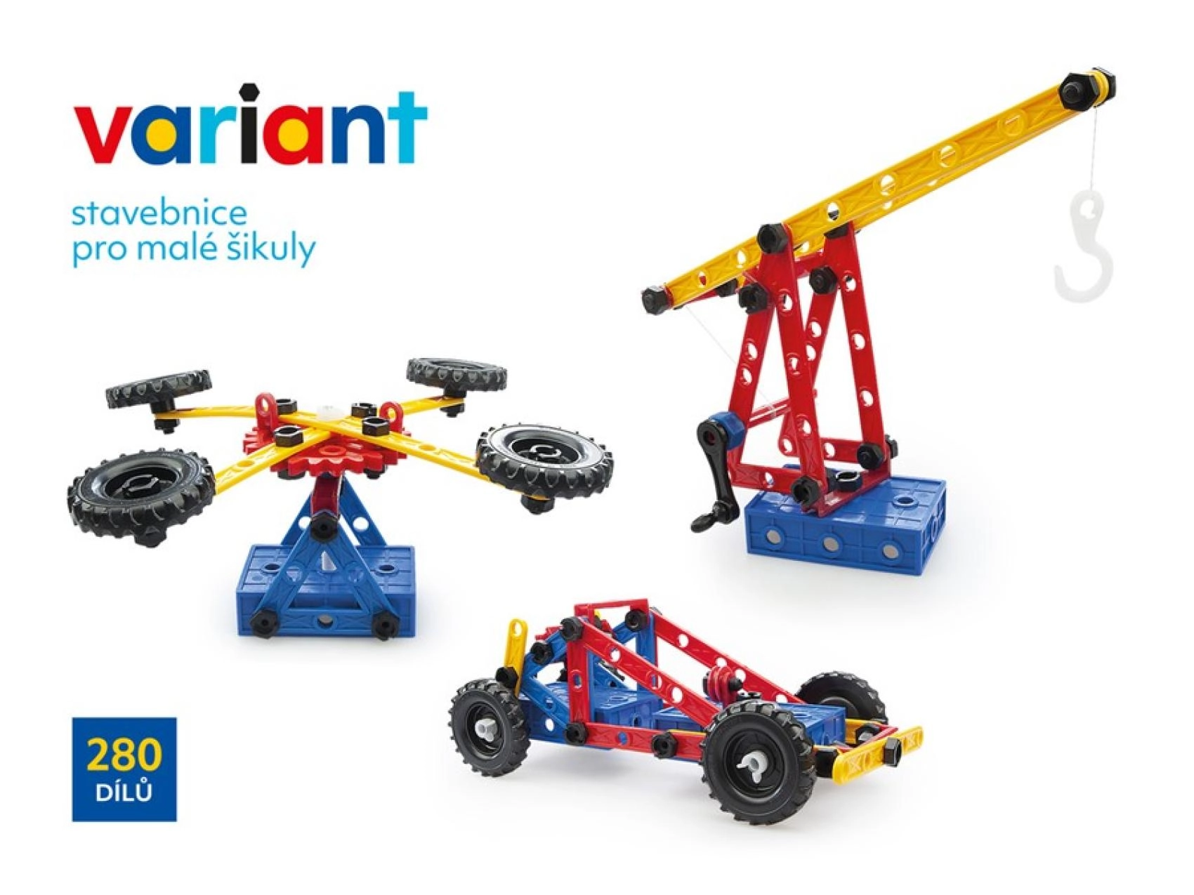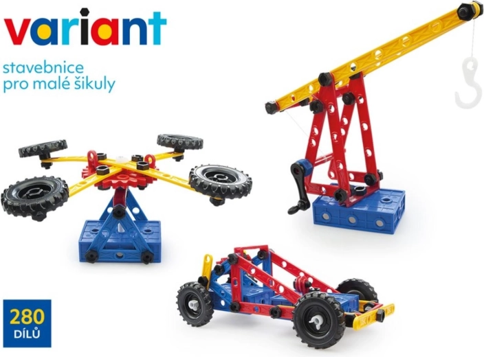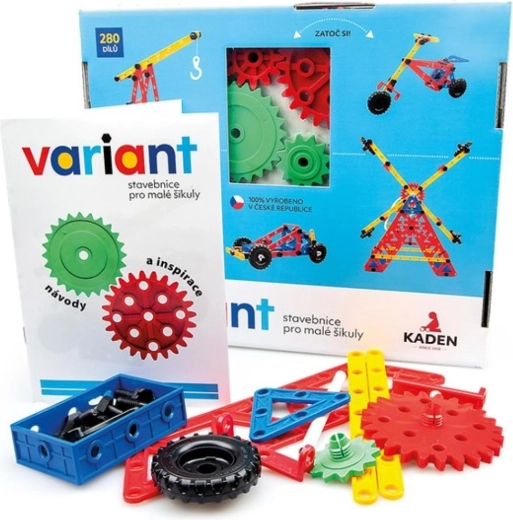 Ontdek een creatieve wereld met de kunststof bouwset Variant met 280 onderdelen, die de fijne motoriek, ruimtelijk inzicht en logisch denken ontwikkelt. Dankzij stevige schroeven en moeren, grote geperforeerde panelen en tandwielen met ketting bouwen kinderen auto’s, vliegtuigen en boten – steeds opnieuw.