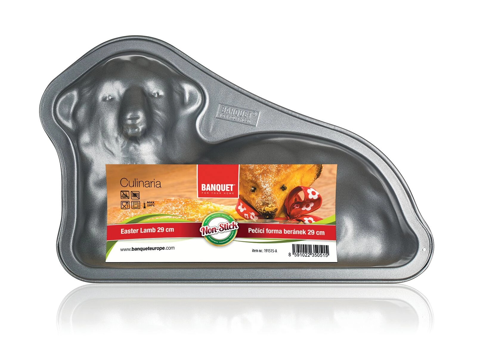 Dankzij het gedetailleerde reliëf krijg je een mooi gevormd 3D-lam klaar om te decoreren met suiker, glazuur of een strik. De vorm is ideaal voor biscuit-, tulband- en roerdegen en is dankzij de antiaanbaklaag eenvoudig te onderhouden – zacht afnemen of afspoelen is voldoende.