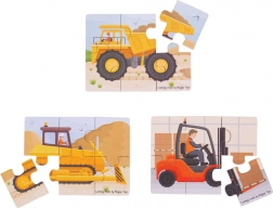 Ontdek een leuke houten puzzel voor de allerkleinsten: drie afzonderlijke puzzels met bouwvoertuigen in een compact formaat. Stimuleert fijne motoriek, logisch denken en herkenning van vormen en kleuren. Een uitstekende keuze voor kinderen vanaf 2 jaar.