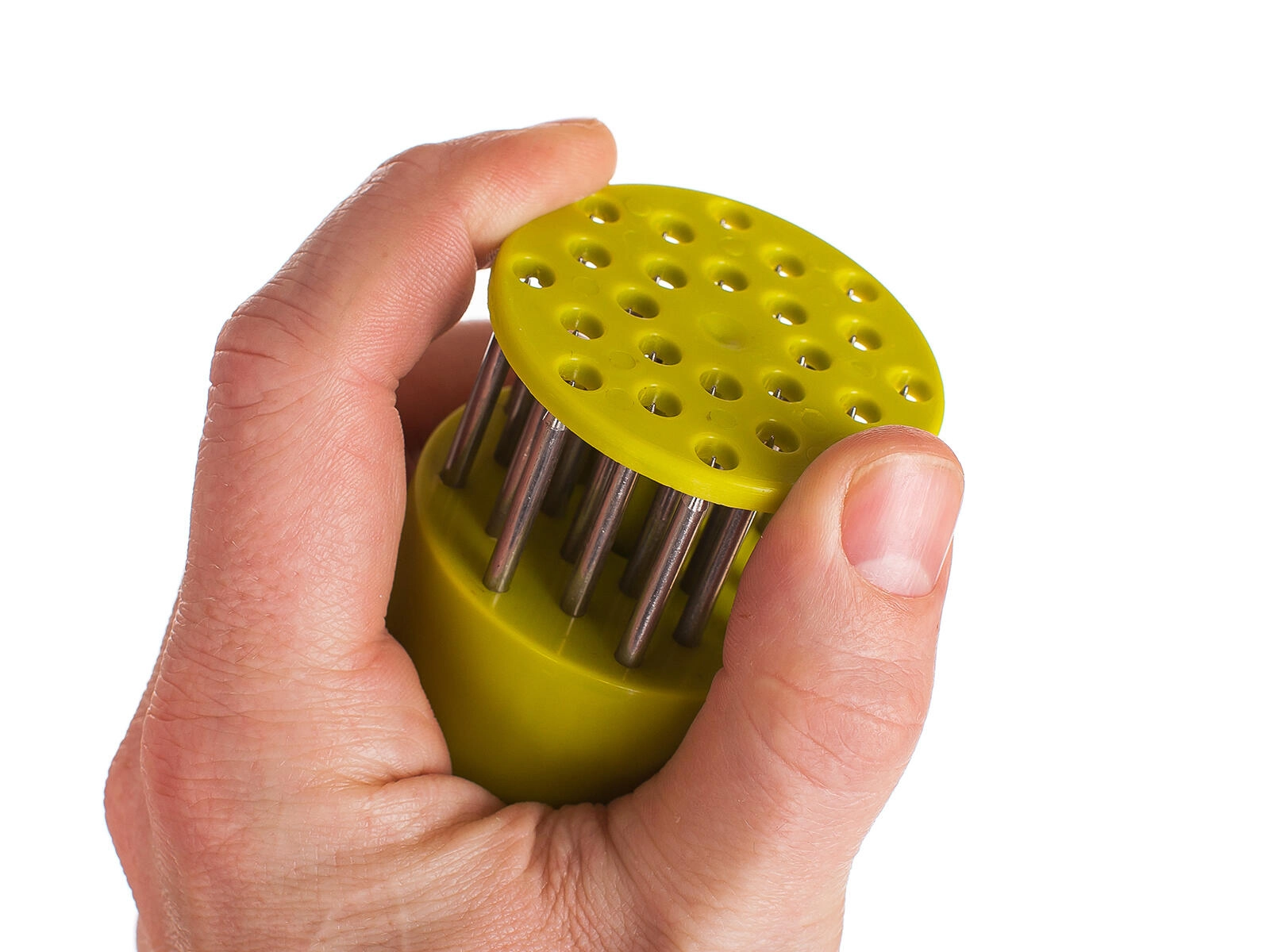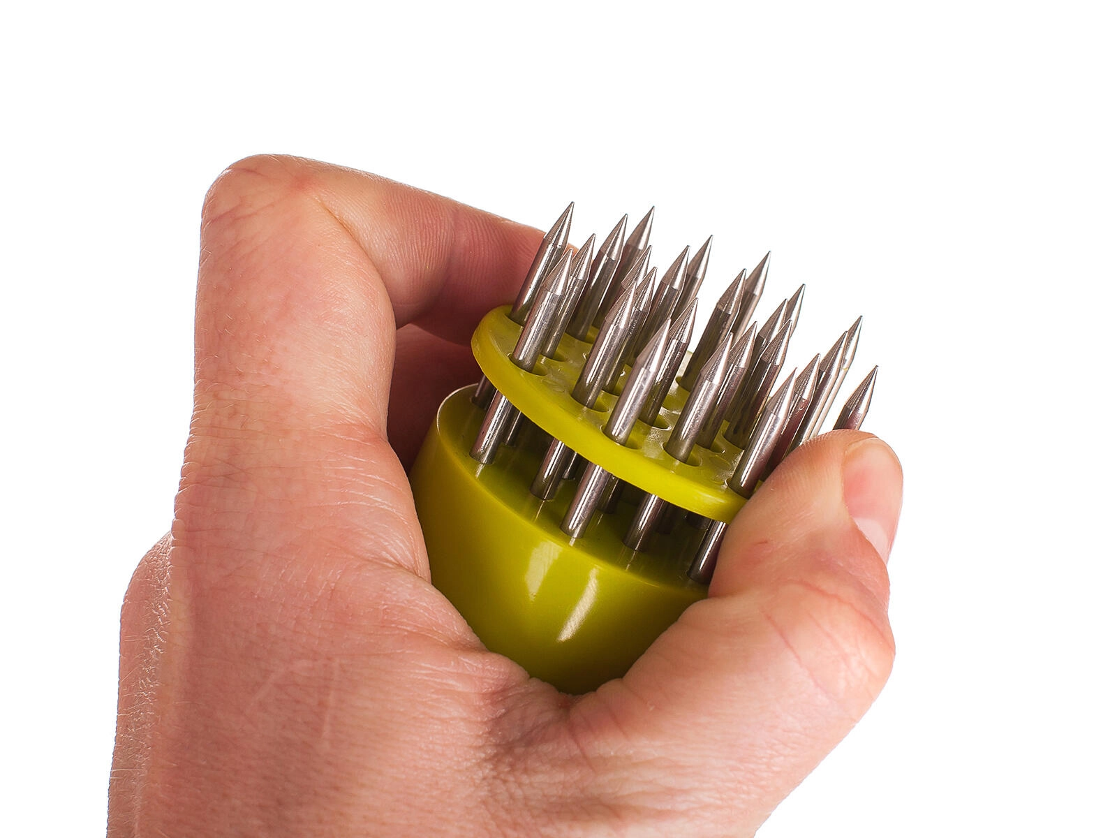 De pennen creëren kanaaltjes voor een betere opname van marinade en warmte, zodat het vlees sneller gaar is en vol van smaak.