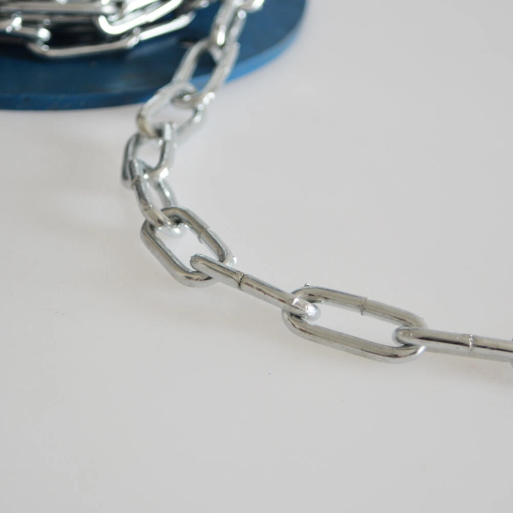 De ketting is opgerold in een lengte van 30 meter, wat het hanteren en opdelen in de gewenste segmenten vergemakkelijkt. De schakelmaten van 32 × 8,2 mm en de materiaaldikte van 3,9 mm bieden een uitgebalanceerde verhouding tussen sterkte en flexibiliteit voor een breed scala aan toepassingen in huis, werkplaats en industrie.