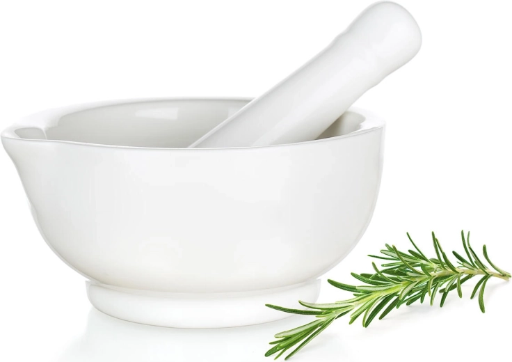 Elegante porseleinen vijzel met stamper, diameter 11,5 cm, ideaal voor het dagelijks fijnmalen van kruiden en specerijen. Dankzij de onglazuurde binnenzijde biedt hij betere wrijving en efficiënt stampen, terwijl hoogwaardig porselein en de tijdloze witte kleur perfect in elke keuken passen.