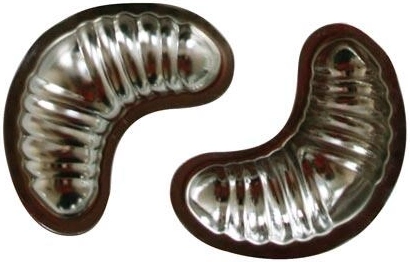 Praktische set koekvormpjes in de vorm van hoorntjes voor het eenvoudig bakken van populaire vanille- en boterhoorntjes. De verpakking bevat 20 stuks vormpjes van vertind blik, die zorgen voor een gelijkmatige garing en gemakkelijk uitnemen van het deeg.