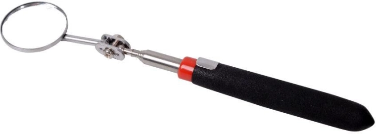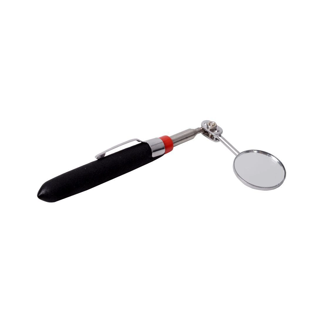 Deze compacte inspectiespiegel vergemakkelijkt de controle van slecht zichtbare plekken – achter de motor, onder meubels of in machines. Dankzij het draaibare scharnier stel je de kijkhoek eenvoudig in en met de telescopische uitschuiflengte van 170–495 mm bereik je ook smalle plaatsen.