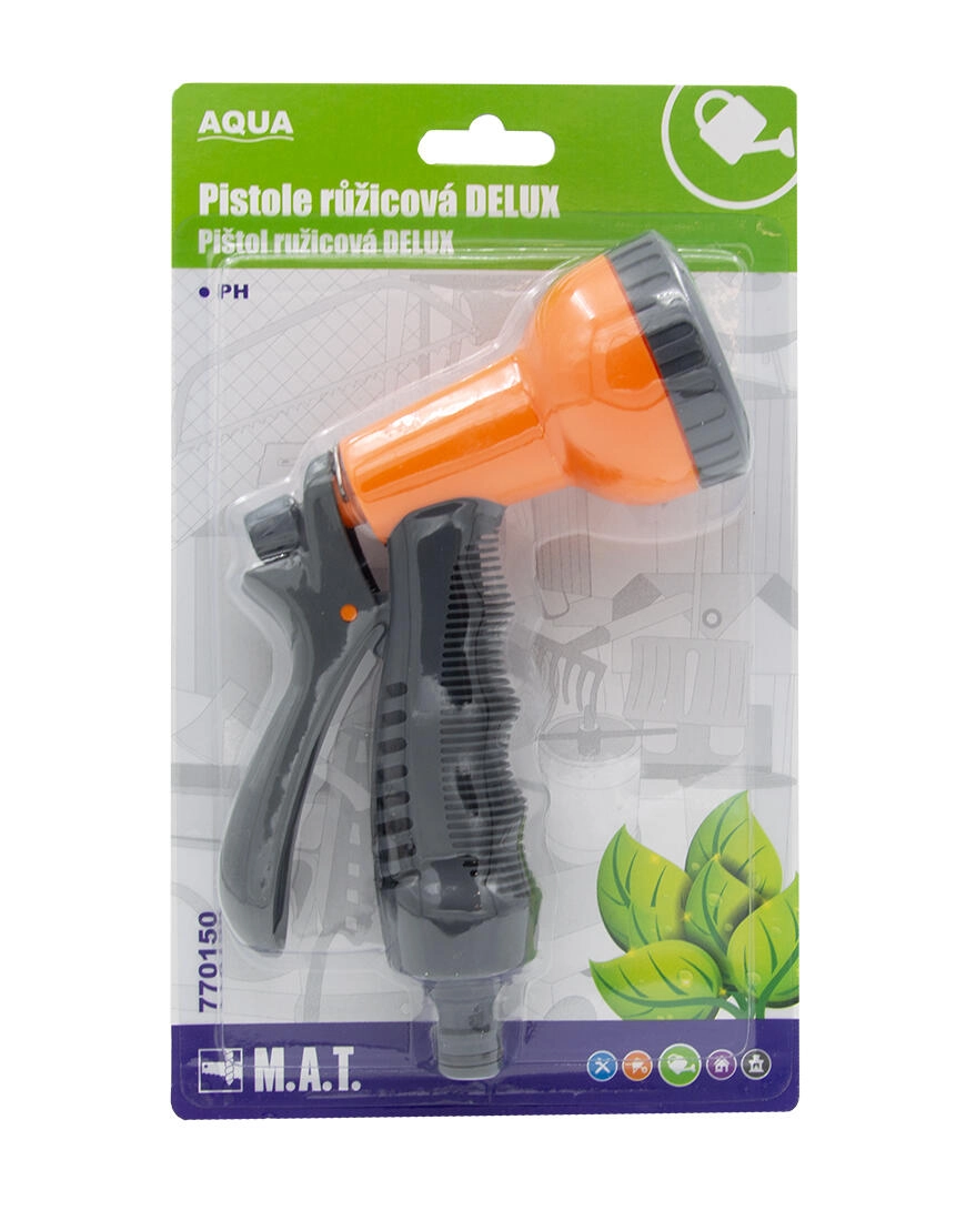 Universeel rozen-douche spuitpistool DELUX is ideaal voor dagelijks begieten en schoonmaken rond het huis. Biedt comfortabel debietregeling, zachte waterverneveling en een duurzame uitvoering van kunststof. Ligt uitstekend in de hand en dankzij de rozenkop zorgt het voor een egale besproeiing van bloemen, groente en gazon. Licht, duurzaam en eenvoudig te bedienen – de perfecte aanvulling op uw tuinslang.