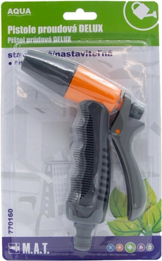 Het praktische, verstelbare straalpistool DELUX AQUA is de ideale aanvulling voor elke tuin. Het biedt traploze straalinstelling van fijne nevel tot krachtige straal, eenvoudige bediening en een lichte kunststof constructie voor comfortabel gebruik bij zowel bewateren als reinigen.