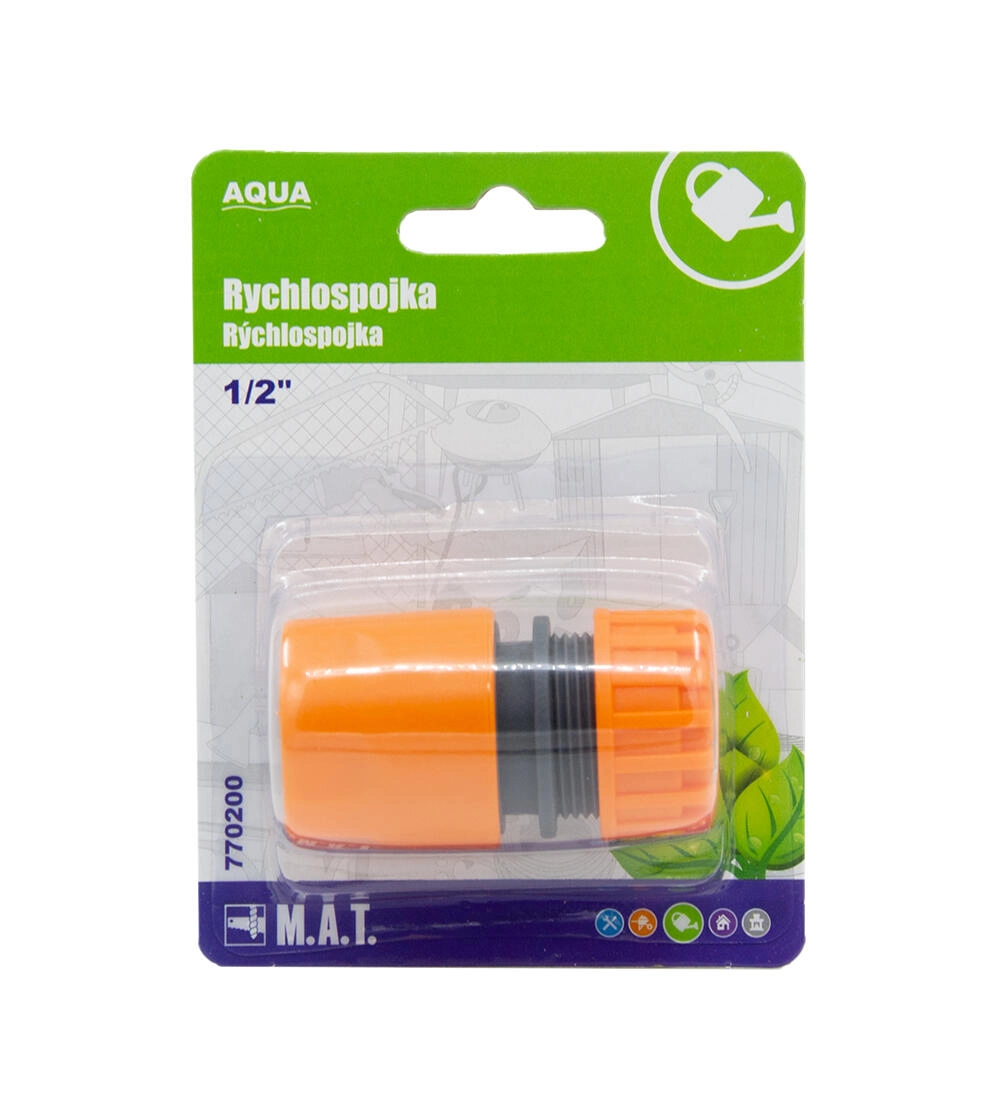 De snelkoppeling 1/2" AQUA zorgt voor een snelle en veilige aansluiting van de tuinslang op sproeiers, douches of andere accessoires. Dankzij de hoogwaardige O-ring biedt hij een dichte verbinding zonder waterverlies en comfortabele bediening, zelfs met natte handen.