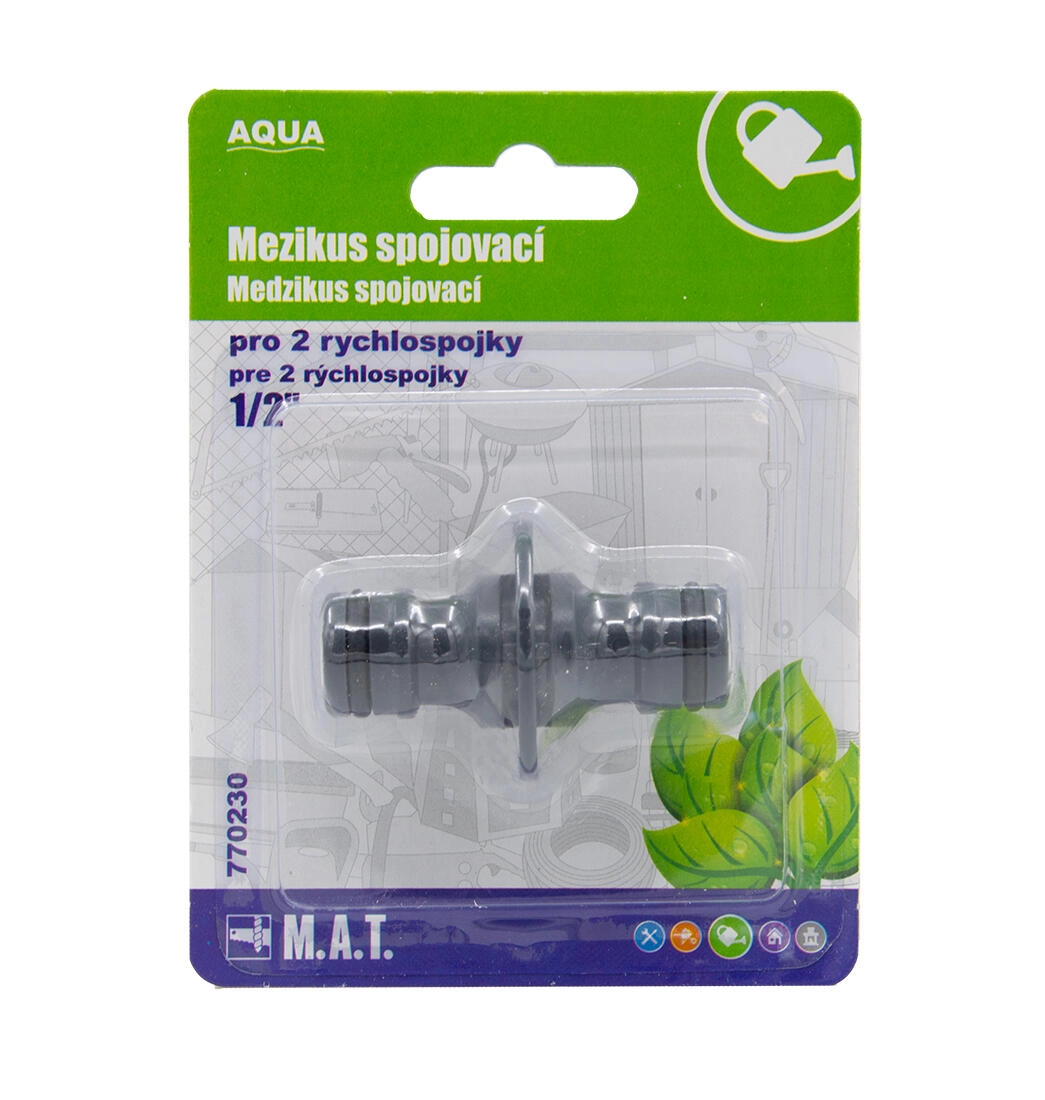 Praktische koppeling voor 2 snelkoppelingen 1/2" van het merk AQUA vergemakkelijkt het verlengen en verbinden van tuinslangen. Duurzame kunststof uitvoering zorgt voor een snelle en lekdichte verbinding zonder gereedschap.