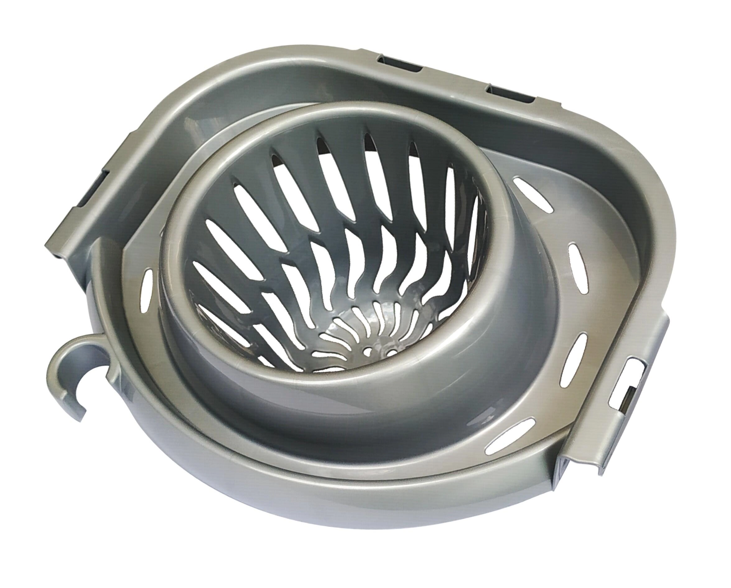 De universele ovale emmer met wringer maakt dweilen makkelijker zonder dat uw handen in aanraking komen met vuil water. Dankzij de ergonomische vorm, stabiele bodem en praktische schenktuit is de bediening eenvoudig en schoon. De zilveren uitvoering past in ieder huishouden en op kantoor.