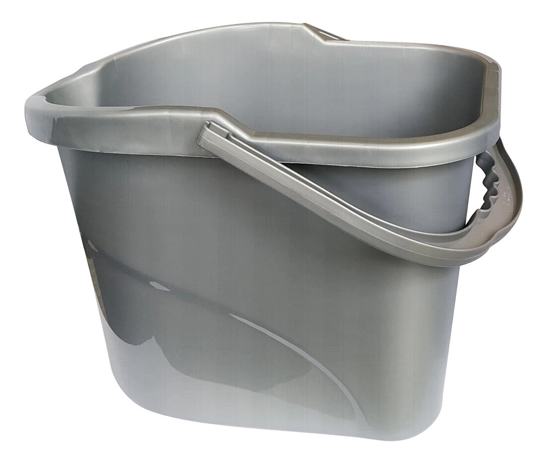 Praktische ovale emmer met een inhoud van 15 l en een eenvoudig afneembare wringer, ideaal voor het dagelijks schoonmaken in huis. Licht en duurzaam kunststof design, comfortabel handvat en een gevormde schenktuit voor schoon en precies schenken zonder morsen. Geschikt voor stroken- en katoenen moppen.