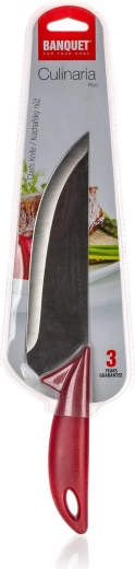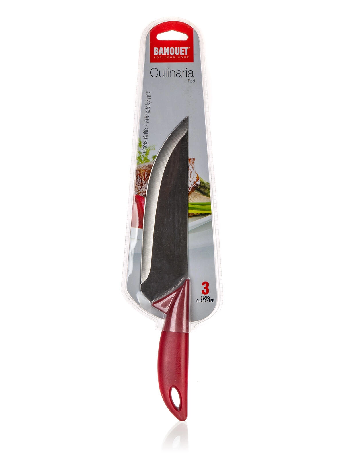 Het koksmes uit de CULINARIA RED-lijn is een betrouwbare helper voor de bereiding van vlees, groenten en kruiden. Het stalen lemmet zorgt voor zuivere sneden en langdurige scherpte, terwijl de lichte kunststof handgreep prettig in de hand ligt en de controle tijdens het snijden verbetert.