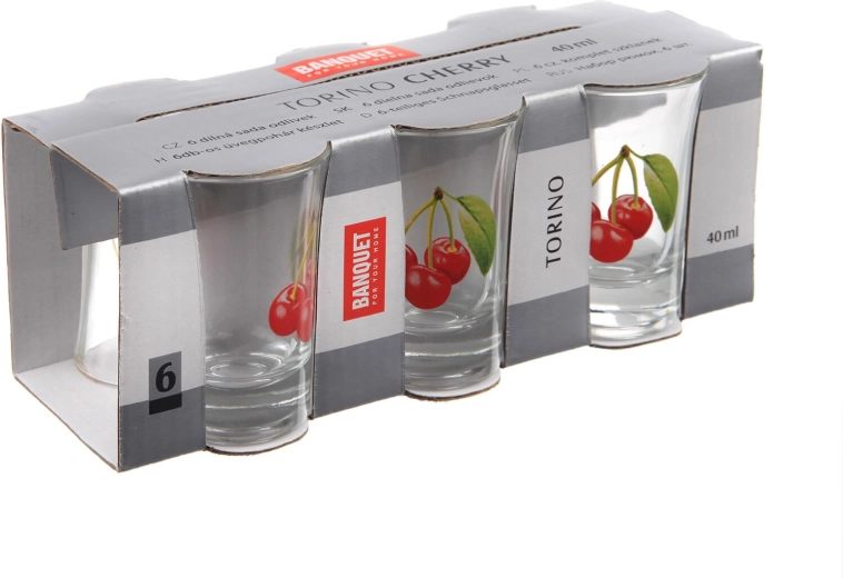 Stijlvolle shotglaasjes met kersenmotief bieden een klassieke uitstraling en praktisch gebruik voor elke gelegenheid. Elk glas heeft een inhoud van 40 ml, is compact en duurzaam, ideaal voor cafés, restaurants en de thuisbar. De verpakking bevat 6 stuks voor comfortabel serveren.