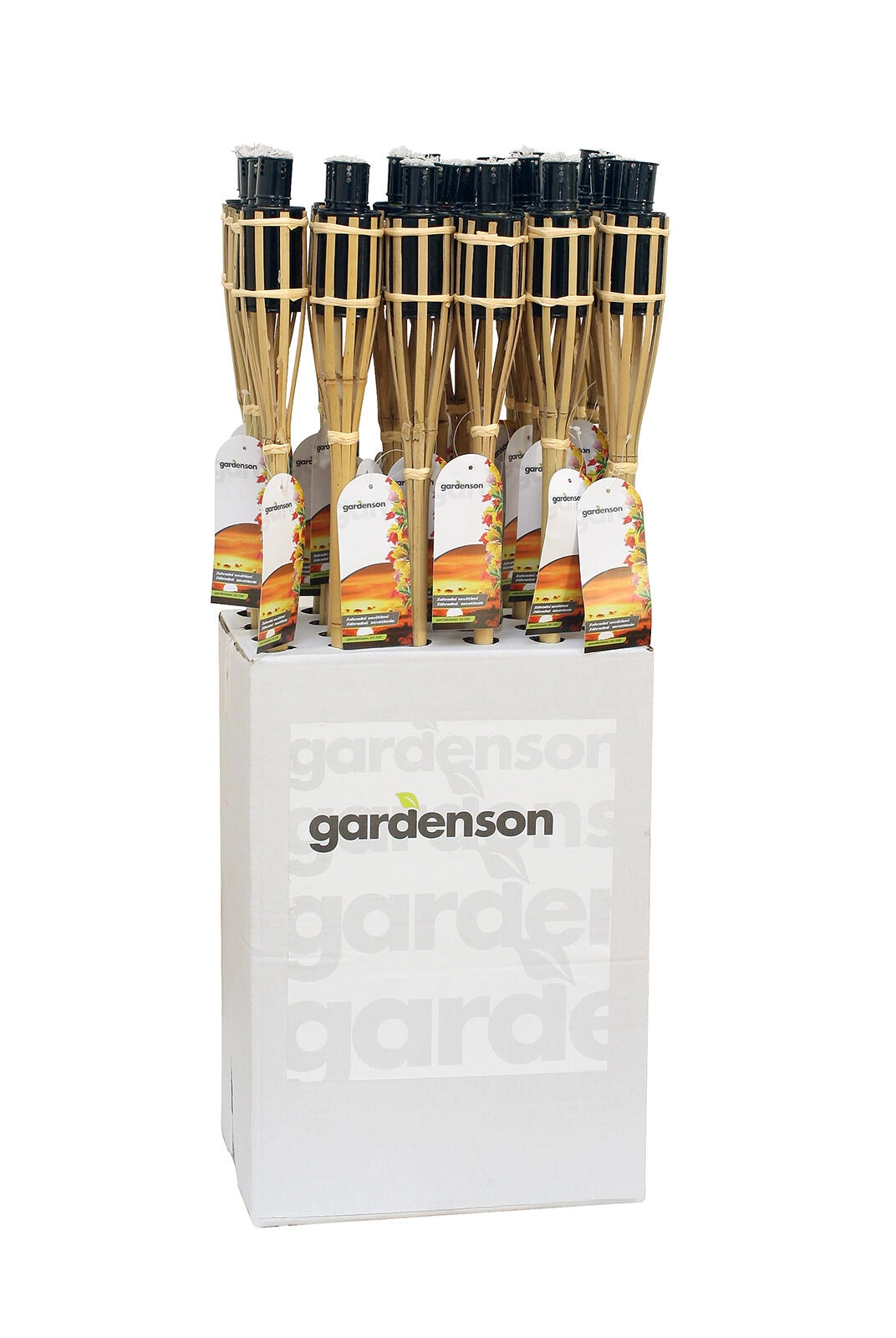 Stijlvolle bamboefakkel van 90 cm in een elegante zwarte kleur die een prettige sfeer creëert in de tuin, op het terras en bij zomerse avonden. Kan worden gevuld met lampolie, inclusief varianten tegen muggen en insecten, en zorgt zo voor gezellig licht én praktische bescherming tegen hinderlijk ongedierte.