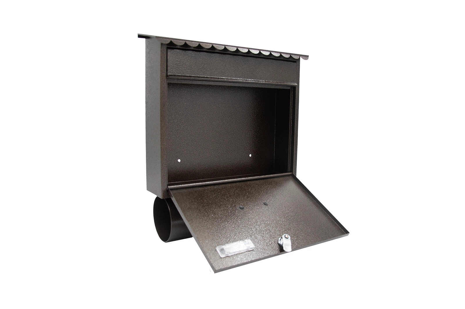 Elegante brievenbus in antieke stijl voor eengezinswoningen met afmetingen 390 × 440 mm. Biedt een voorzijde-inworp en -uitname, een transparant naamplaatje en een praktische onderste kranten- en folderhouder. In bruine uitvoering past hij bij zowel traditionele als moderne gevels.