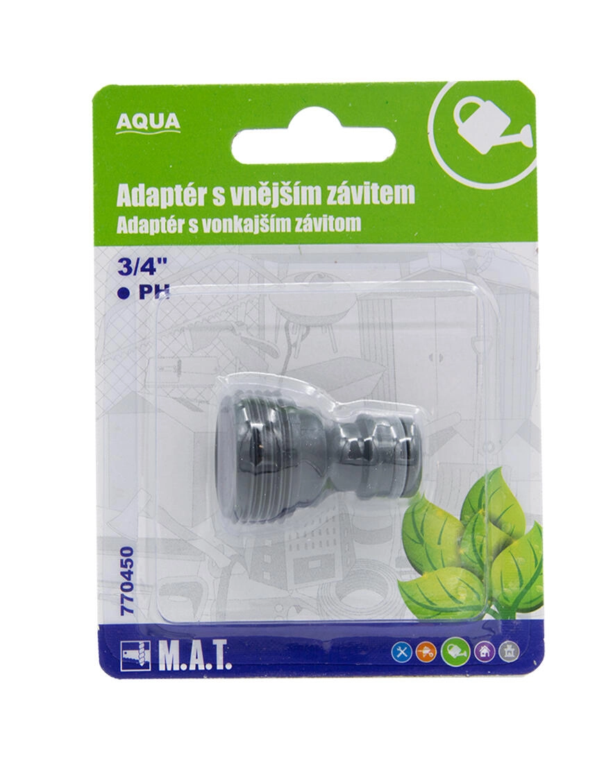 De AQUA-kraanadapter met 3/4" schroefdraad is een ideale keuze voor het verbinden van een tuinslang met een waterkraan. Dankzij de eenvoudige montage en stevige schroefdraad zorgt hij voor een veilige en lekdichte verbinding bij het sproeien, tuinonderhoud of wassen.