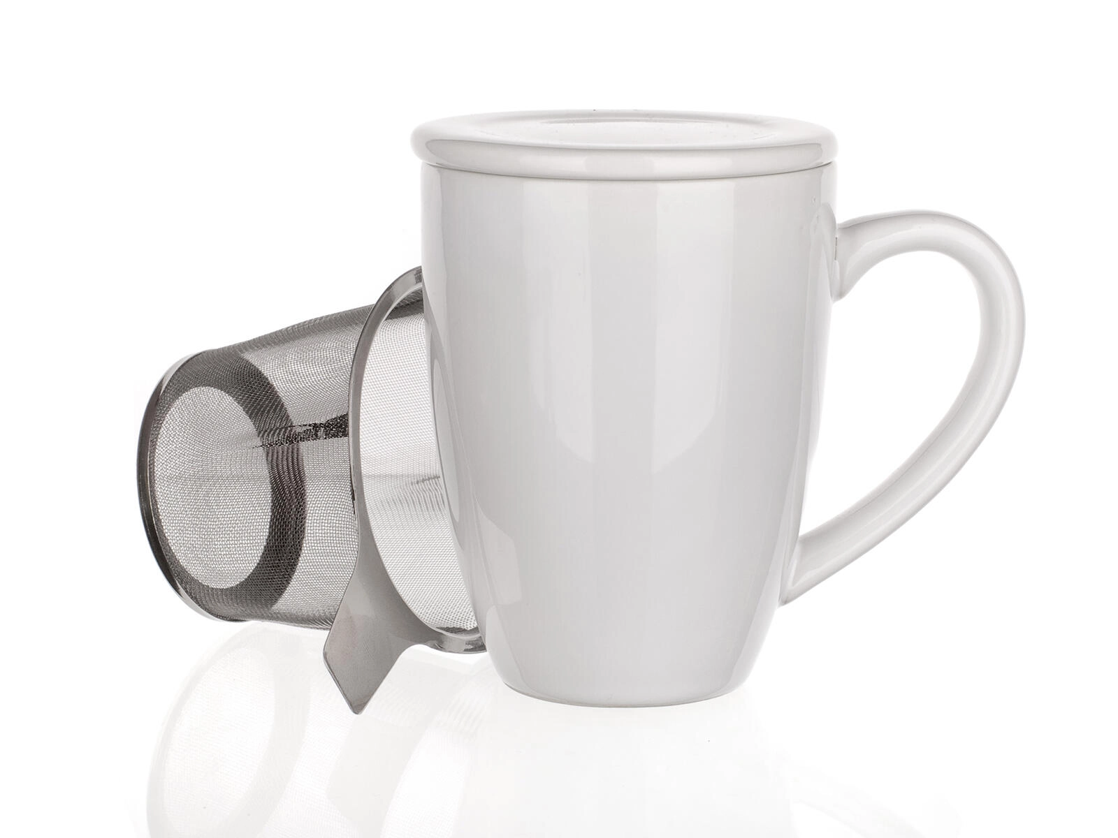 Keramische mok met deksel en roestvrijstalen zeef 350 ml