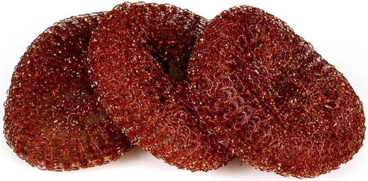 Praktische keukenspons met een koperen oppervlak voor grondige reiniging van vaatwerk. Ideaal voor aangebakken en ingedroogde resten, pannen, potten en bestek. De verpakking bevat 3 stuks, elk met een laag gewicht voor comfortabel gebruik. Niet gebruiken op gevoelige oppervlakken zoals teflon.