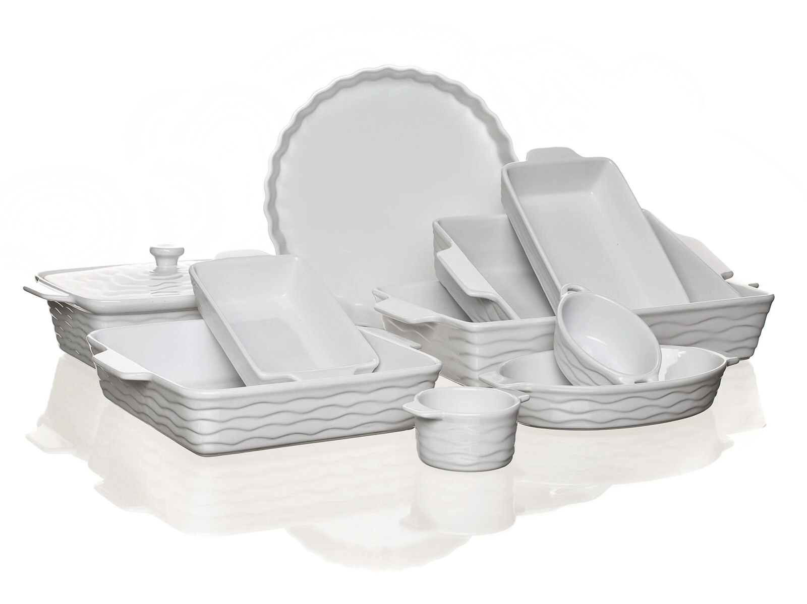 De rechthoekige keramische schaal CULINARIA White is ideaal voor het gratineren van pasta, groenten, vlees en zoete desserts. Keramiek slaat warmte uitstekend op en geeft deze gelijkmatig af, zodat het eten mooi en egaal gaart. Het elegante golvende reliëf en de witte glazuur passen in elke keuken en op tafel voor direct serveren.