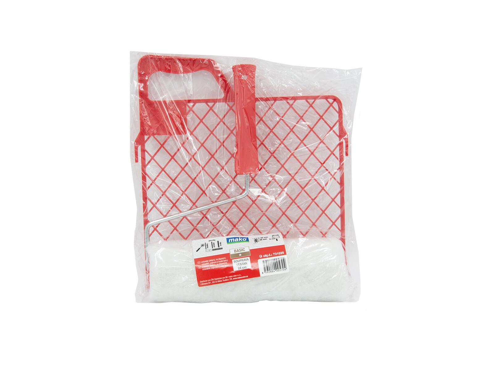 Praktische VESTAN schilderset van 25 cm breed, ideaal voor snel en schoon schilderen van muren en plafonds in huis. Bevat een rooster voor gelijkmatig afstrijken van verf, een comfortabel handvat en een kwaliteitsverfroller voor een egale laag zonder strepen.