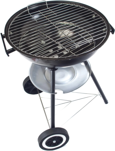 De compacte ronde houtskoolbarbecue met een diameter van 40 cm is ideaal voor de tuin, het balkon en kamperen. Hij biedt een deksel met luchtregeling, een stabiele constructie, transportwielen voor eenvoudig verplaatsen en een geïntegreerde aslade voor schoon en comfortabel gebruik.