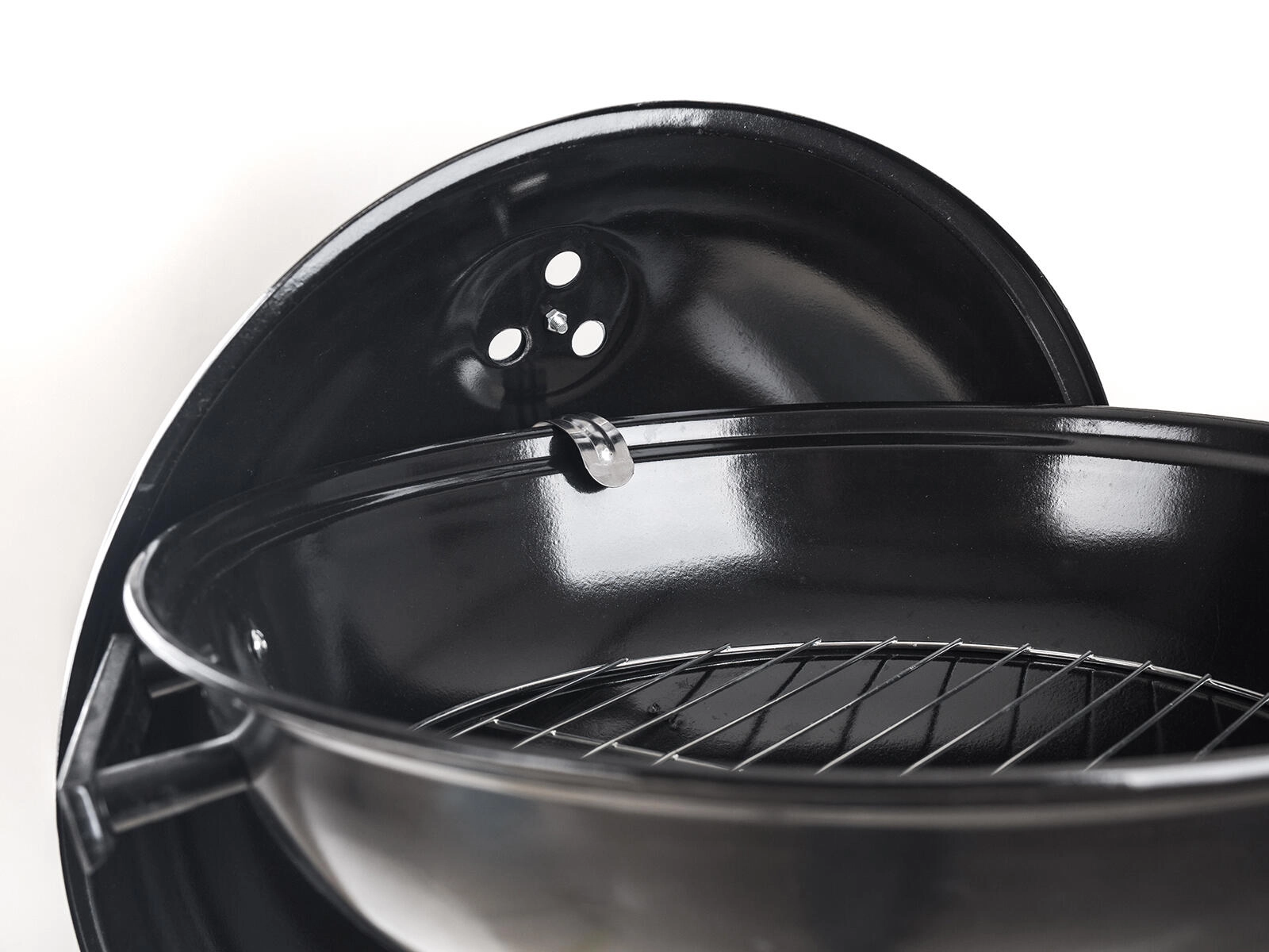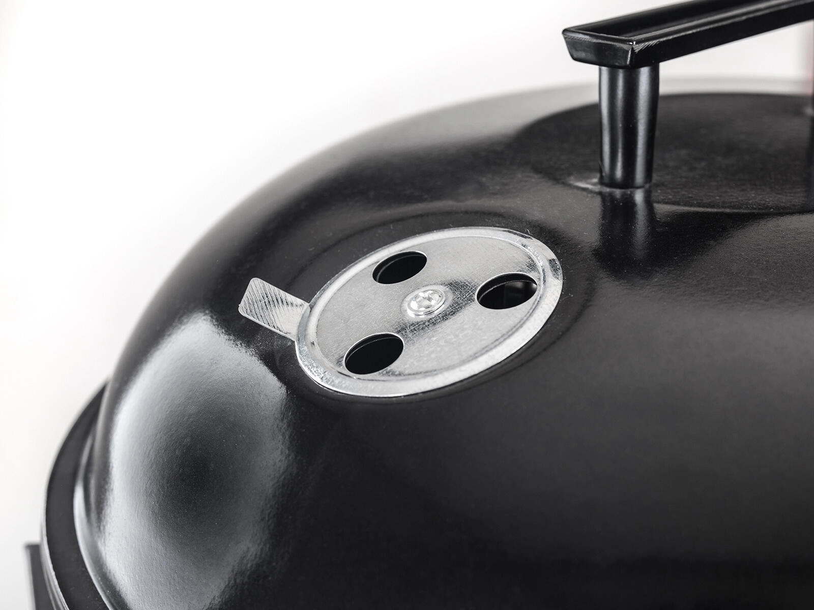 De barbecue is uitgerust met een aslade en een onderste regelopening met 4 luchtgaten die de luchttoevoer optimaliseren. Transportwielen vergemakkelijken het verplaatsen op terras of in de tuin, zodat je je favoriete steaks, groenten of worstjes overal kunt bereiden.